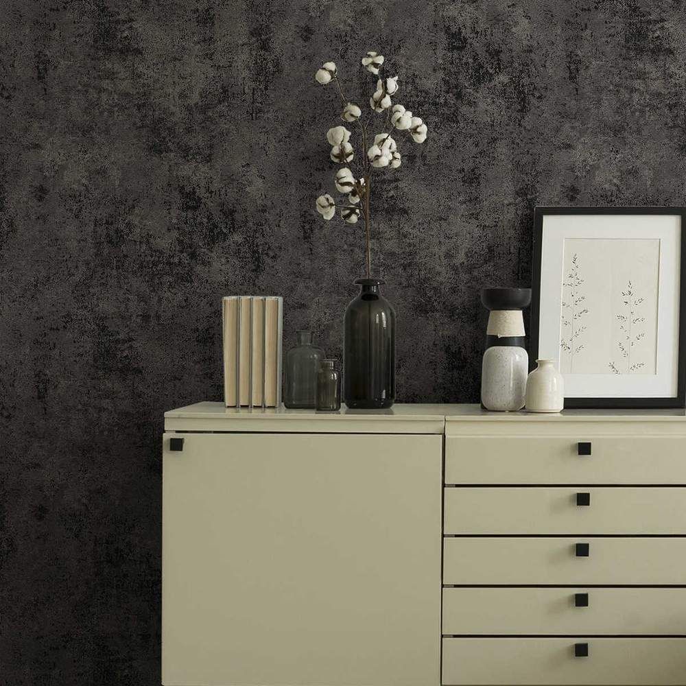 Distressed Carbon Concrete Charcoal Black Living Walls Collection Vinyl Wallpaper 37425-6