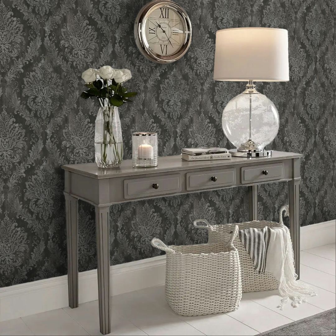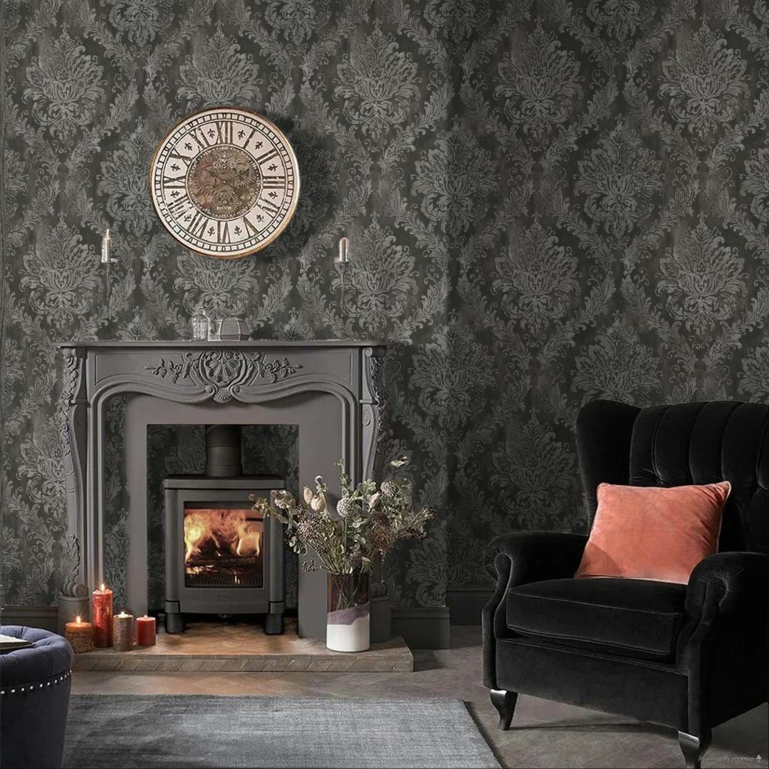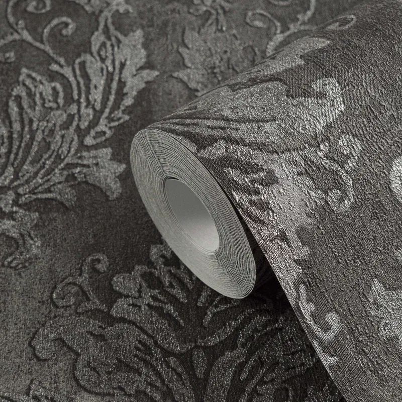 Grand Palace Black & Grey Damask Vinyl Wallpaper 79049-6