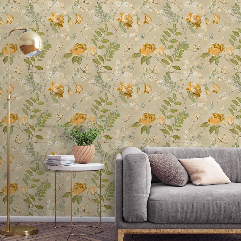 Lola Fruits Yellow Chic Floral Wallpaper A68802