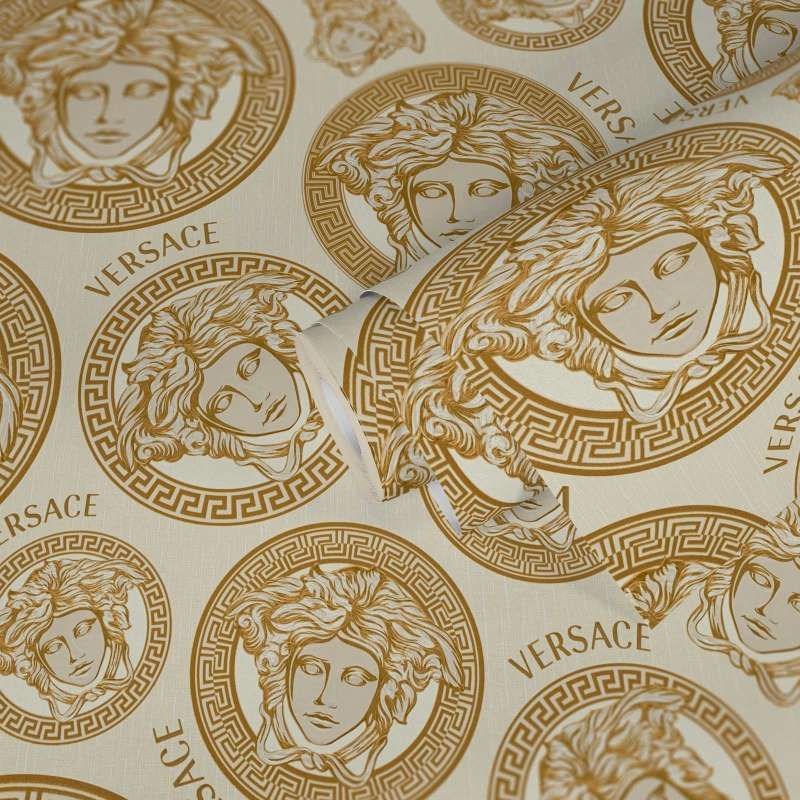 Medusa Heads Cream & Gold Luxury Vinyl Wallpaper 386115