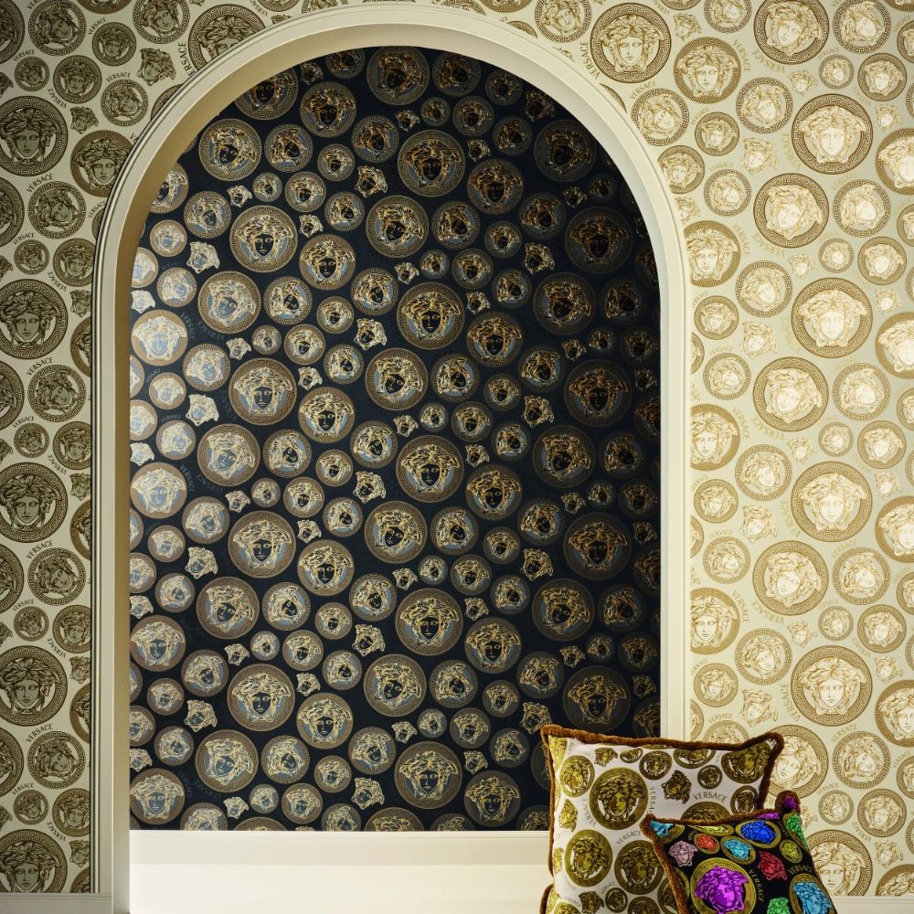 Calculate QuantityBold and daring, this vividly printed wallpaper brings the recognizable Versace attitude to home decor. Part of the Medusa Heads wallpaper collection, this design features a mix of Medusa heads and VERSACE logos throughout.*This is a special order item and cannot be returned. We highly recommend you order a sample before purchasing this wallpaper.