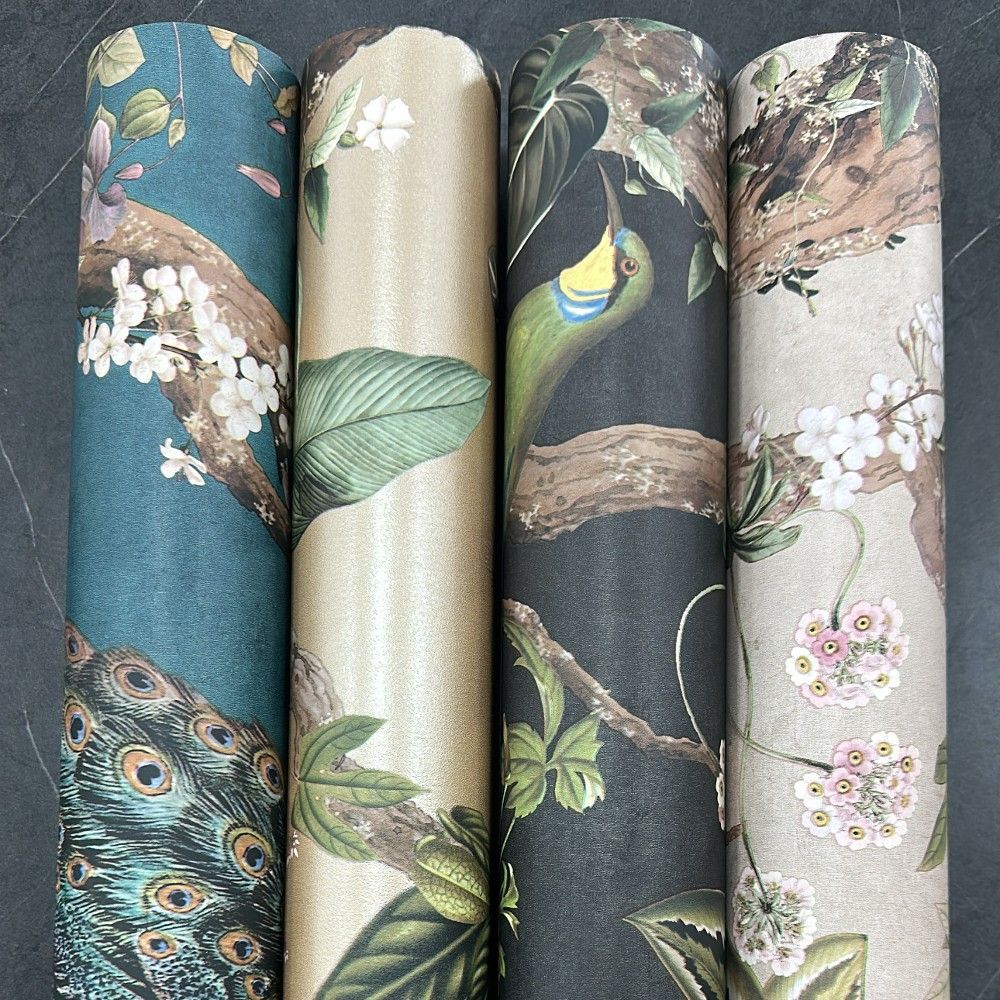 Calculate QuantityThis gorgeous wallpaper features a majestic peacock poised amidst vibrant foliage, its glittering feathers blending seamlessly with the detailed patterns of the surrounding trees. Available in a variety of colours; for a glimpse of the full colour texture, please order a sample.