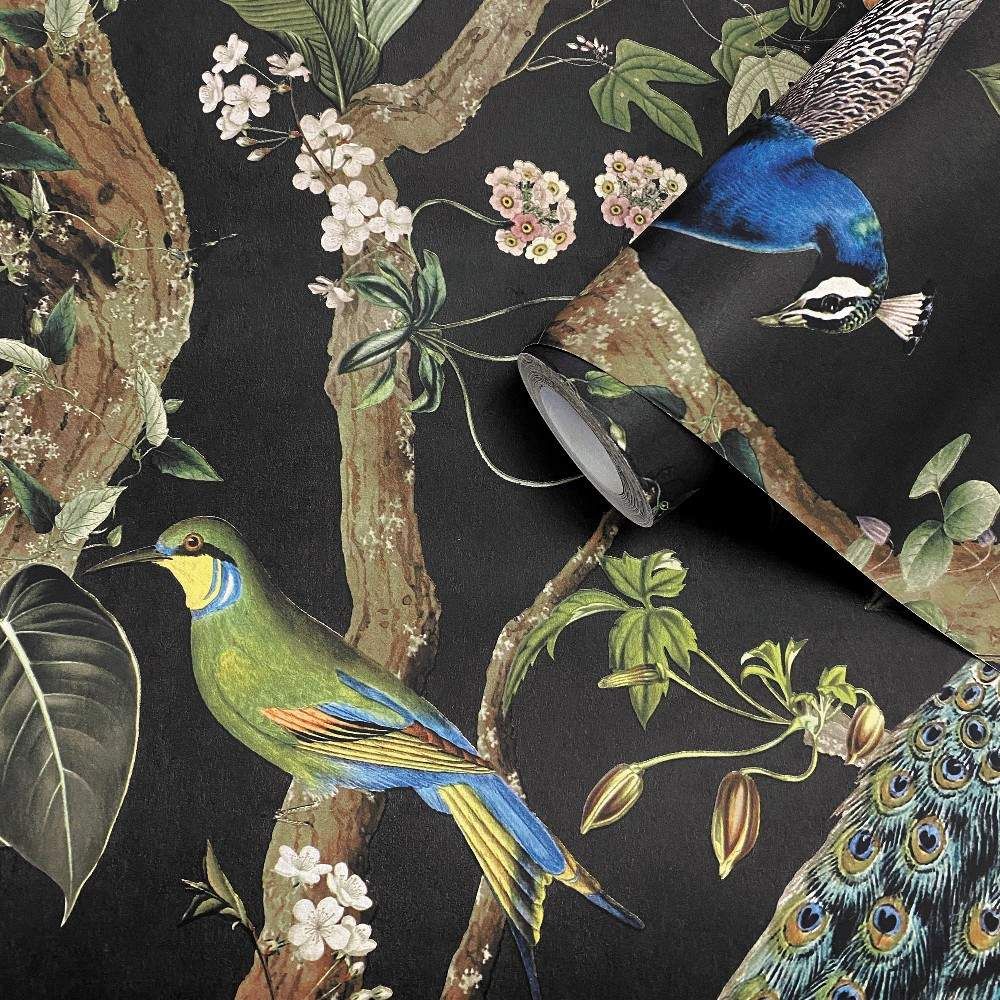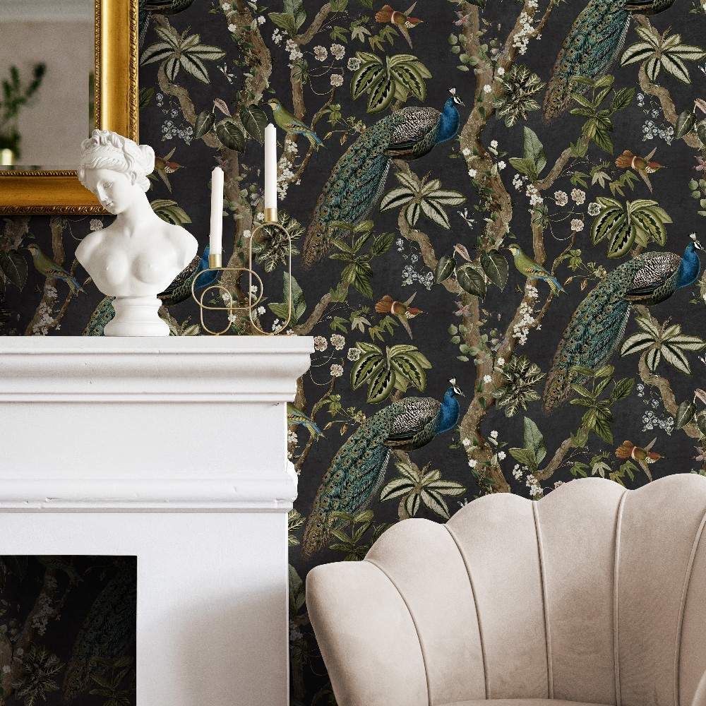 Peacock Woods Charcoal Birds Whispering Wilderness Collection Wallpaper 13681