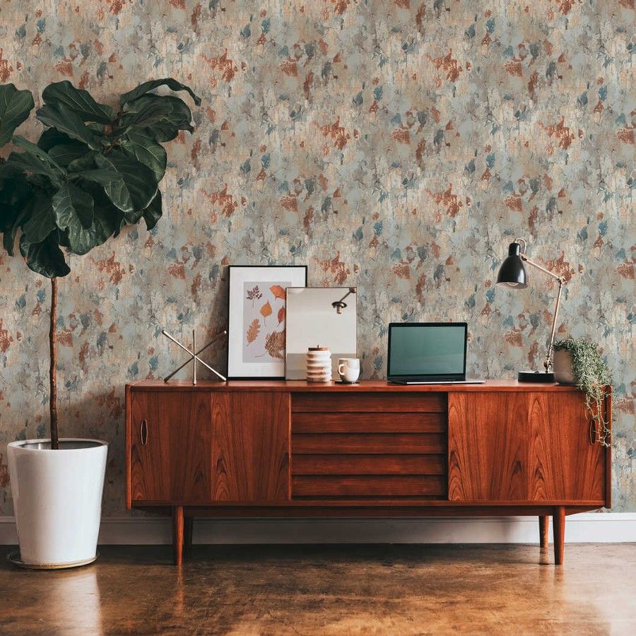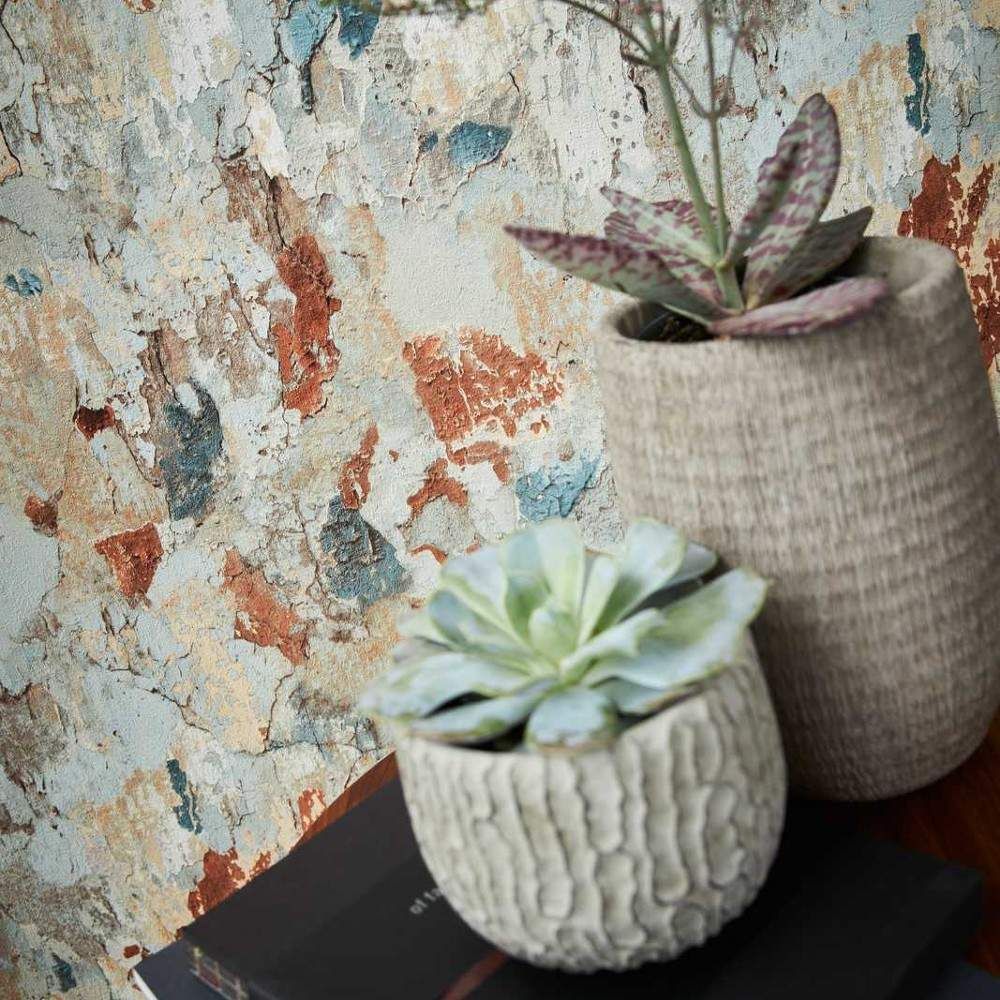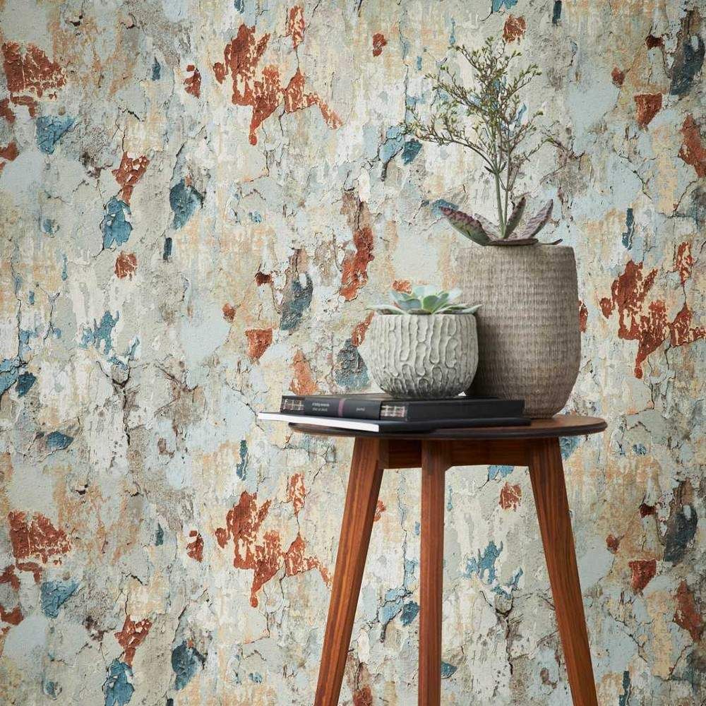 From the Metropolitan Stories 2 collection, an authentic design that mimics a rustic wall effect, featuring aged layers of paint with various shades of colour beneath. Shown here in the Rust colorway. Order a sample to see the true color and texture.