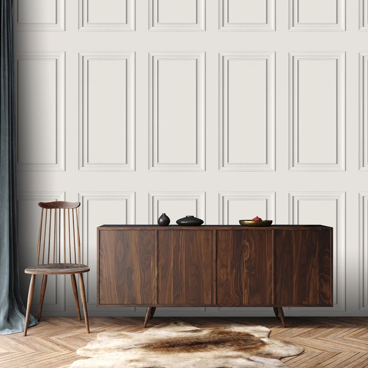 Calculate QuantityWith its gorgeous large scale wood panel look, The Design Library's Dimension Panel wallpaper from the Elegant Homes collection lends a sense of opulence. Elegant Homes Panel wallpaper has a huge repeat of 106 cm, which will produce two large panels when papering normal height walls. It is printed on a flat, smooth piece of paper. Presented in three modern colour schemes, with Off White being shown here.