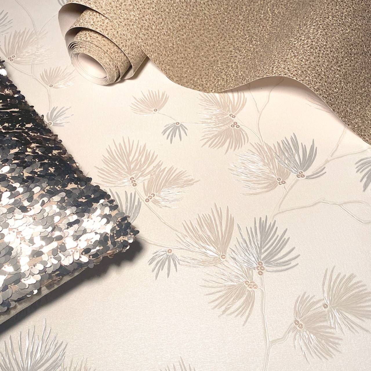 Valentino Pine Leaf Trail Cream Luxury Vinyl Wallpaper 1935