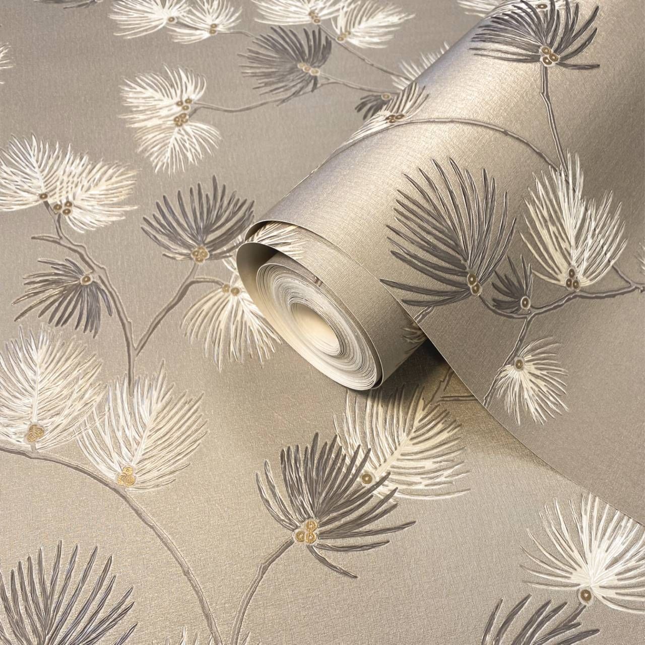 Valentino Pine Leaf Trail Soft Mocha Luxury Vinyl Wallpaper 1934