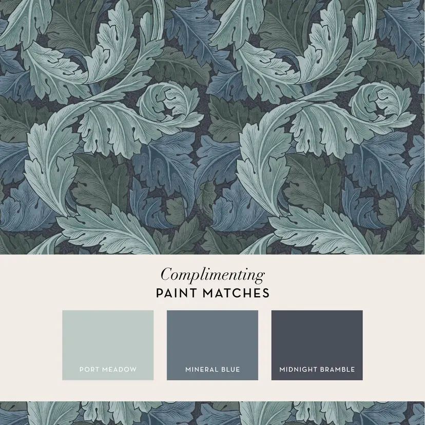 Acanthus Curling leaves Blue Wallpaper by William Morris 124225