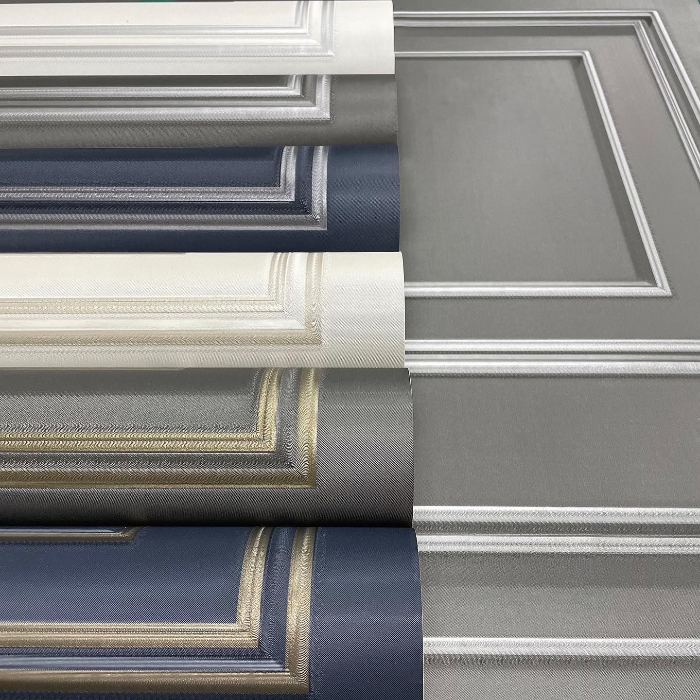 Amara Panel Effect Navy Blue & Metallic Gold Italian Vinyl Wallpaper 7385