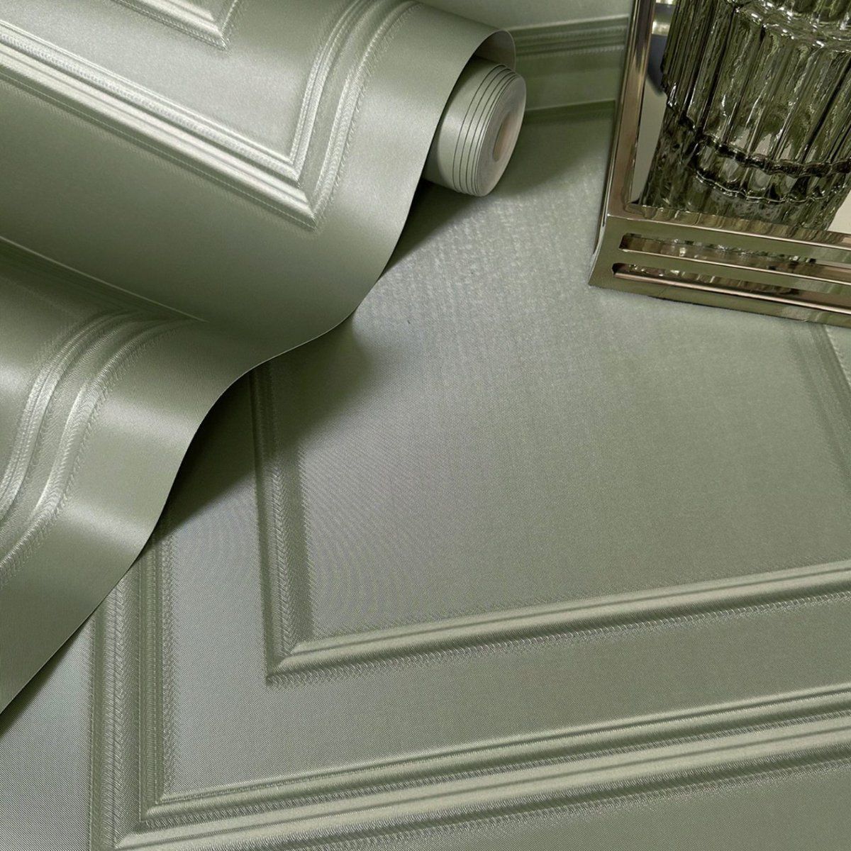 Amara Panel Effect Sage Green Italian Wallpaper 7400