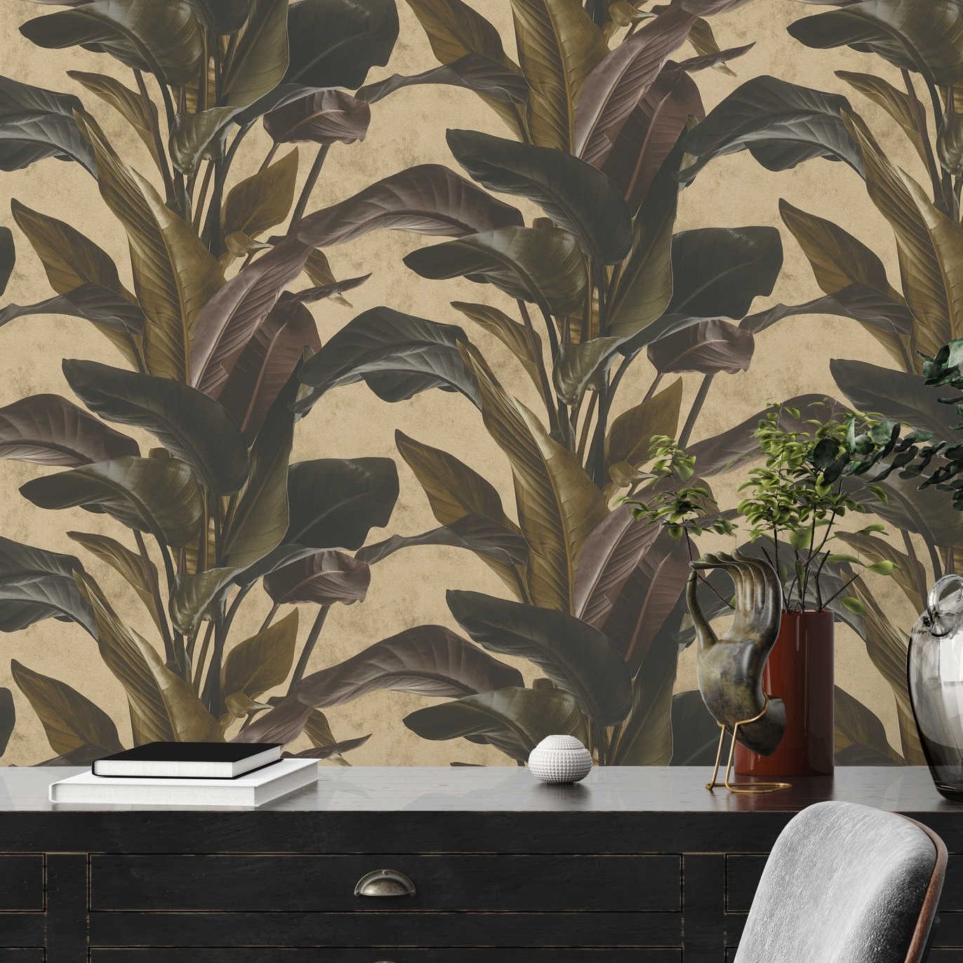 Calculate QuantityThis wallpaper design features vibrant and large tropical foliage that creates a bold statement on your walls. The colours are bright and lively, with a gold colour scheme displayed in this particular design. The intricate and eye-catching pattern is sure to enhance any space and add a touch of exotic flair.