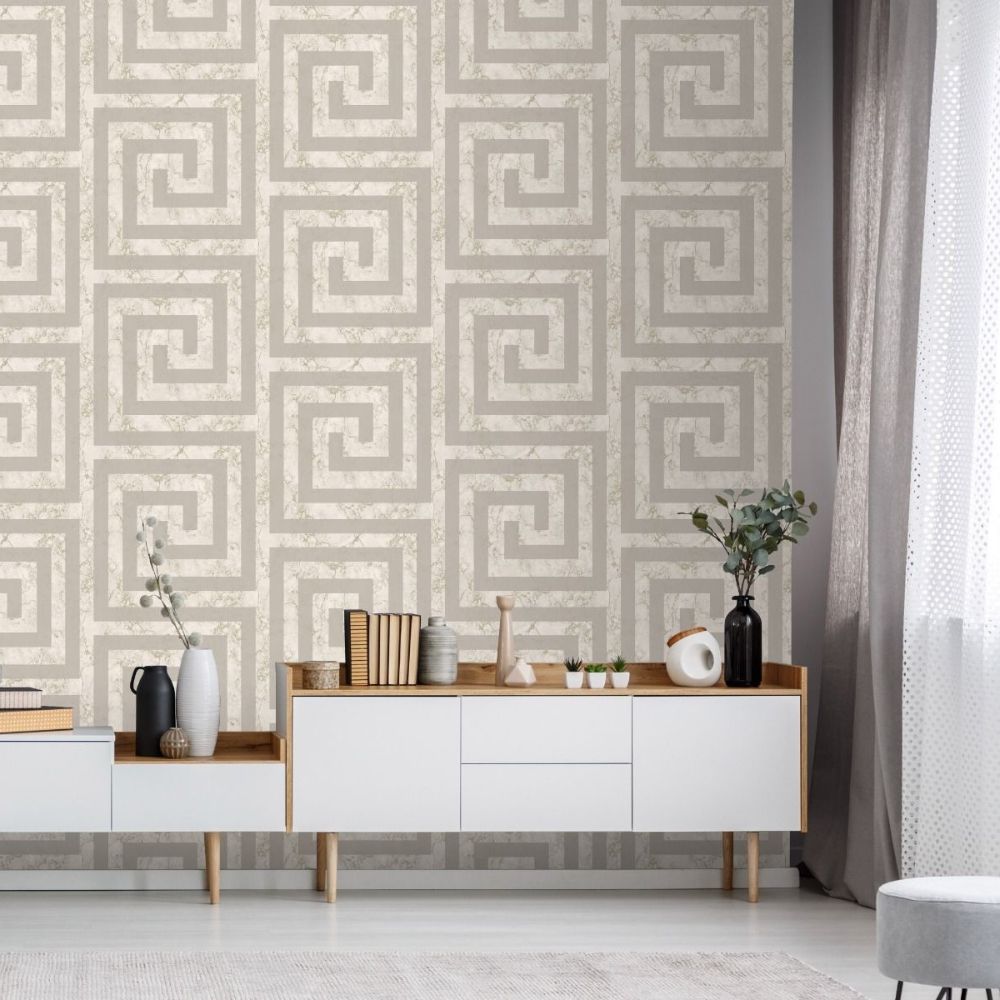 Calculate QuantityThis lovely Greek key-inspired paper promises to lend any living room in your home an opulent and warm vibe. It has a stunning marble backdrop that is given to life with a glossy textured fill. For that crucial sparkle look, this wallpaper is finished with a trace of glitter.