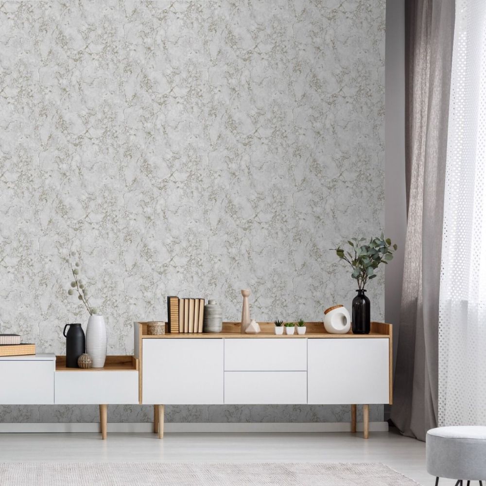 Athena Marble Grey & Metallic Gold Wallpaper 4023