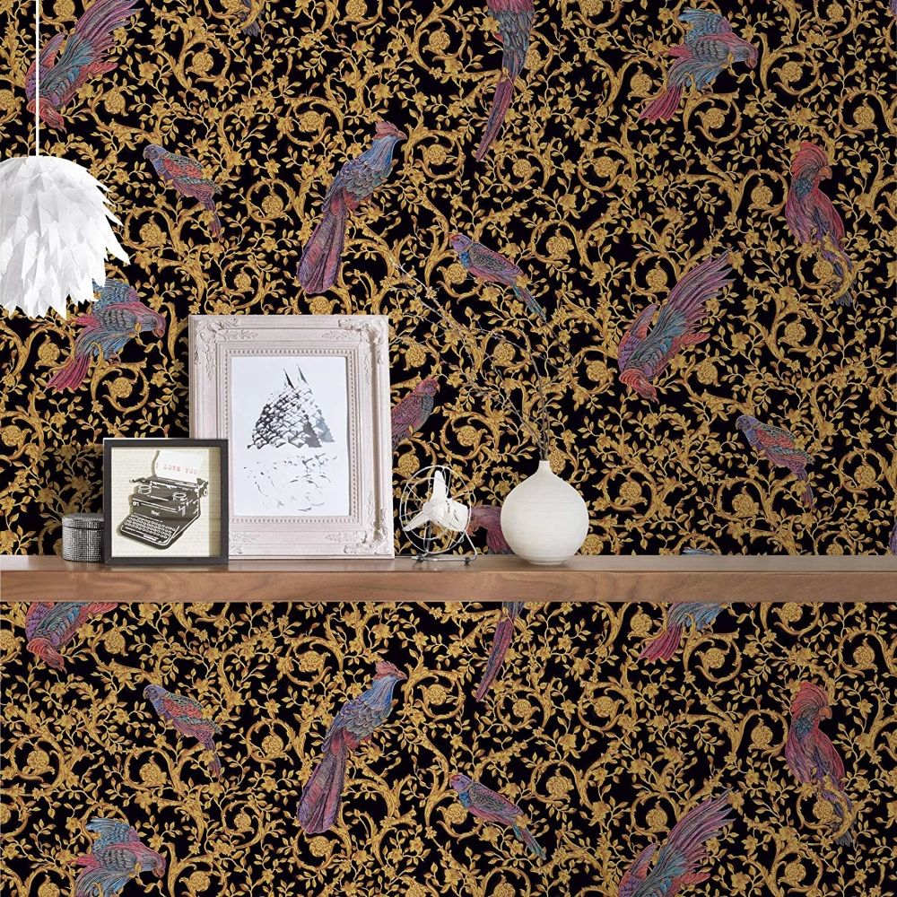 Barocco Birds Black & Gold Wallpaper Luxury Vinyl Wallpaper 370531