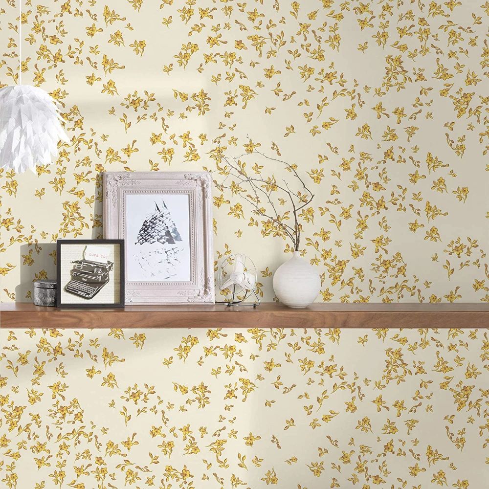 Barocco Ditsy Flowers White & Gold Luxury Vinyl Wallpaper 935855