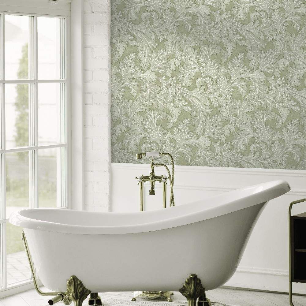 Botanical Scroll Sage Green Curling Leaves Wallpaper 13720