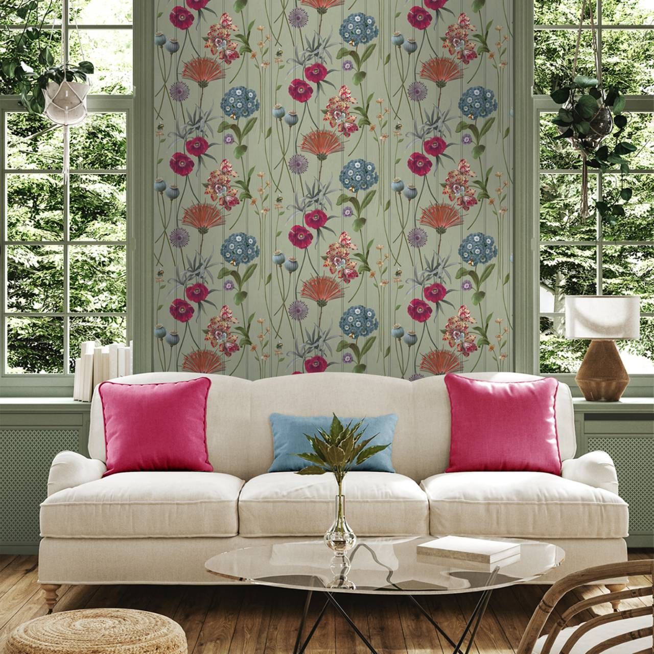 Calculate QuantityBotanist is a visually striking, hand-painted floral design inspired by upcycled furniture and painted wood panel effects. Elegant single floral stems and charming bumblebees sit against a detailed panelled backdrop, blending artistry with nature. Perfectly capturing the spirit of dopamine décor, maximalism, and pattern clash, this bold statement wallpaper brings character and creativity to any space. Available in a variety of rich, versatile colourways—including deep blue with jewel tones, earthy neutrals, sage on fresh white, and multi-colours on sage or white panels—each palette is ideal for accessorising with metallic or coloured glass accents. Designed to coordinate beautifully with our popular wood panel wallpaper prints, Botanist offers a unique and expressive backdrop for modern interiors.