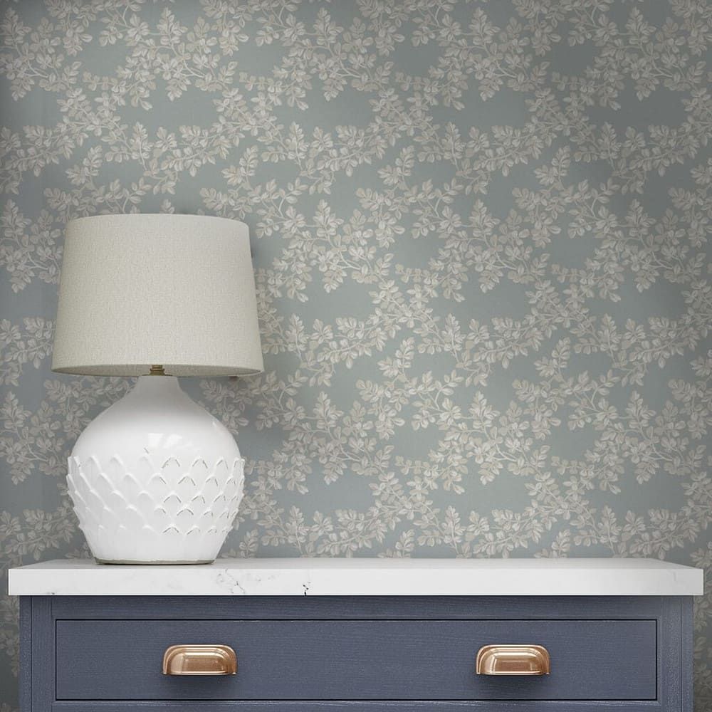 Burnham showcases an exquisite leaf trellis pattern, featuring gracefully intertwined curved leaf stems. This intricate design draws inspiration from a timeless painted artwork found in the Laura Ashley archive, evoking a delightful rustic ambiance.