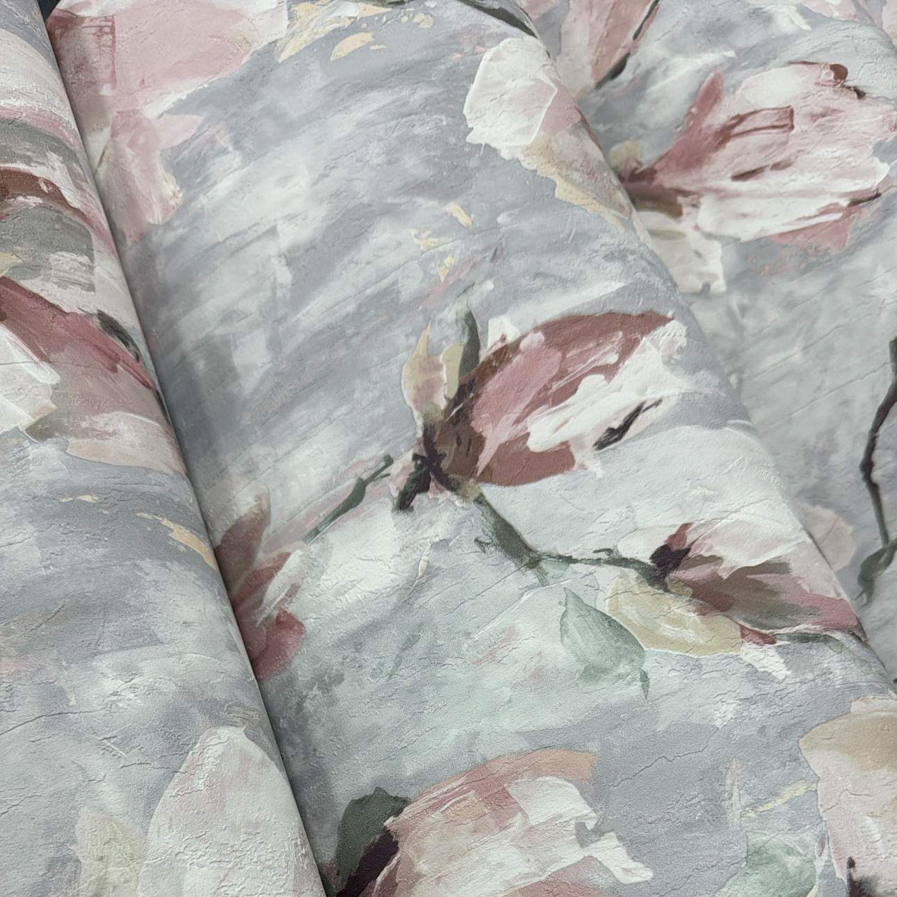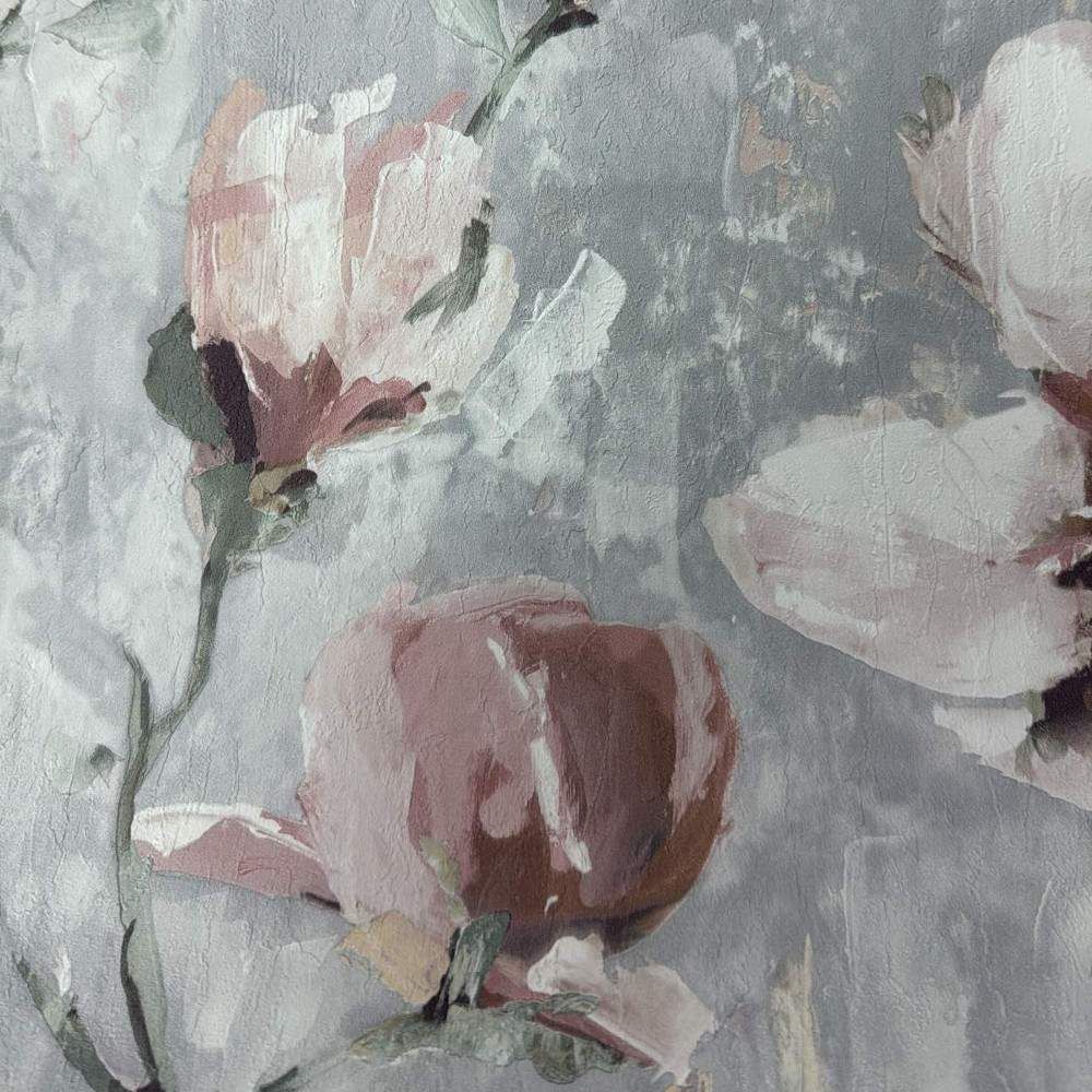 Camilla Floral Grey & Blush Magnolia Flowers Wallpaper 198503