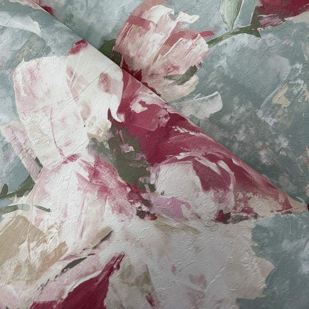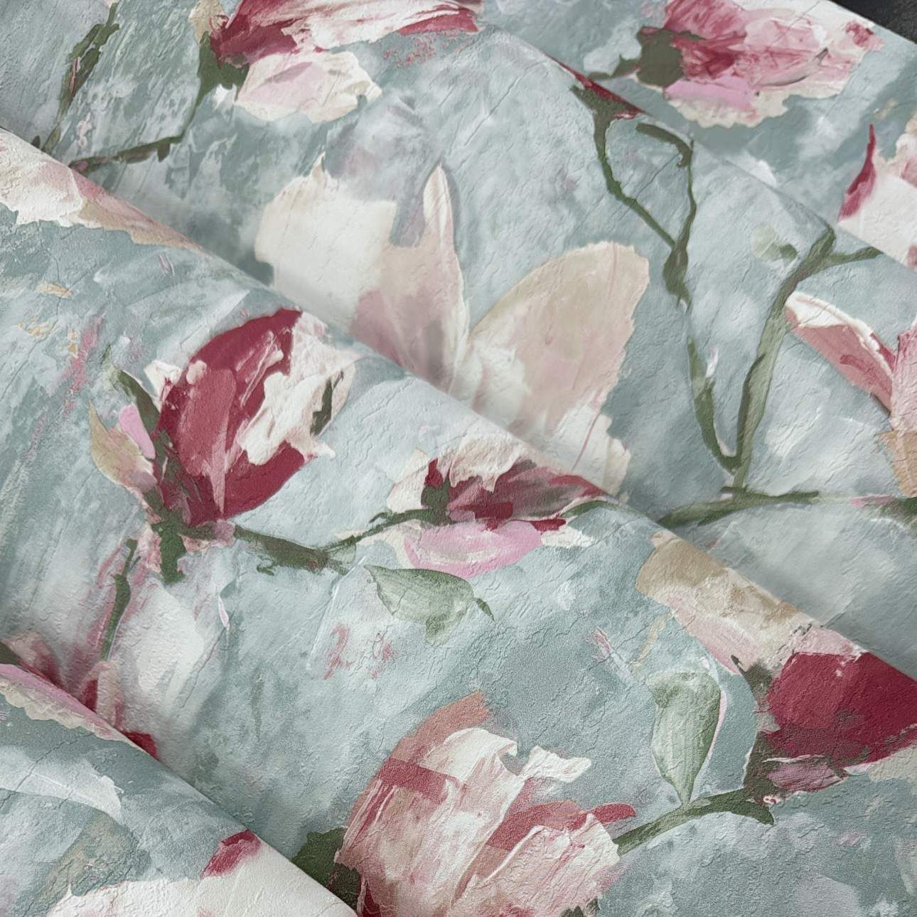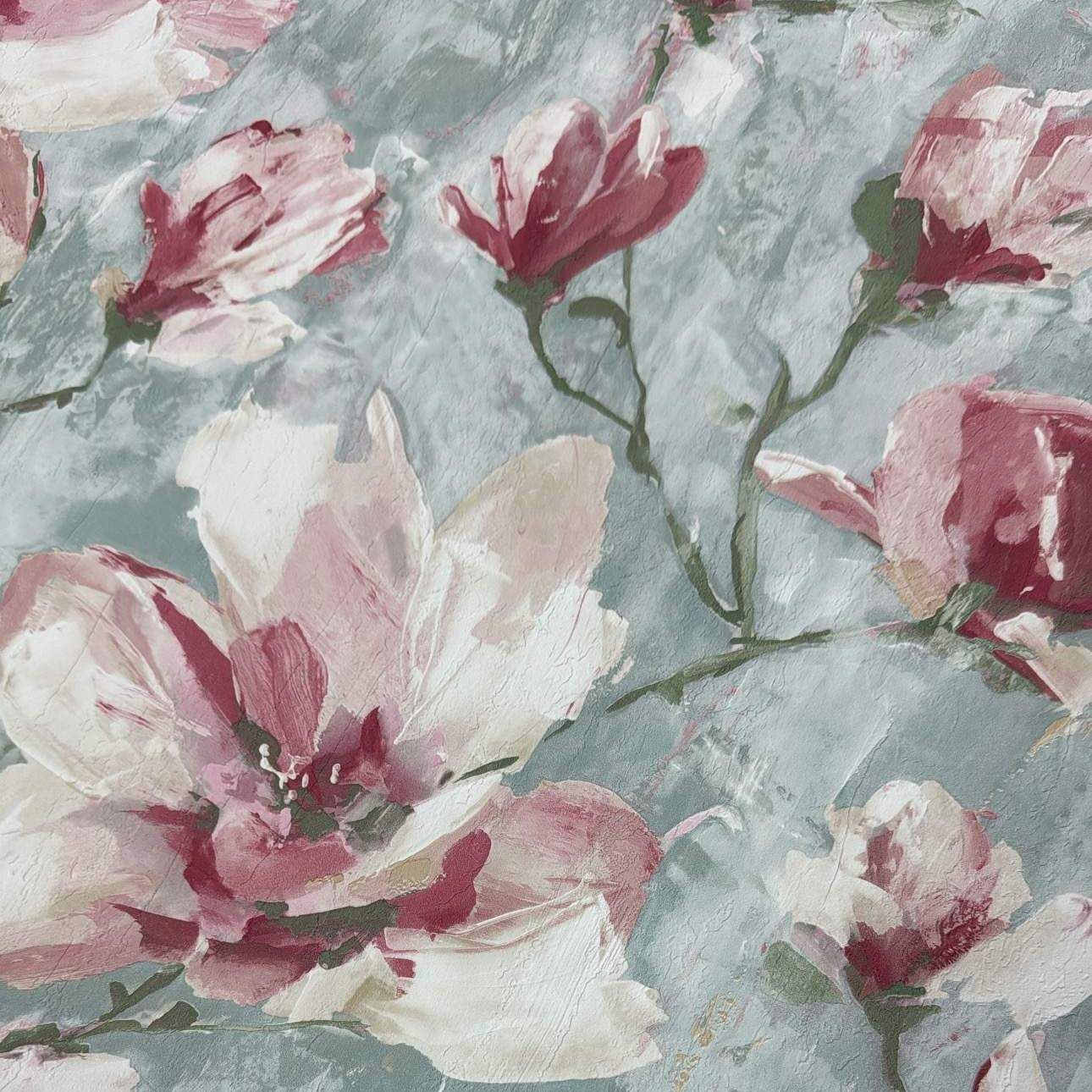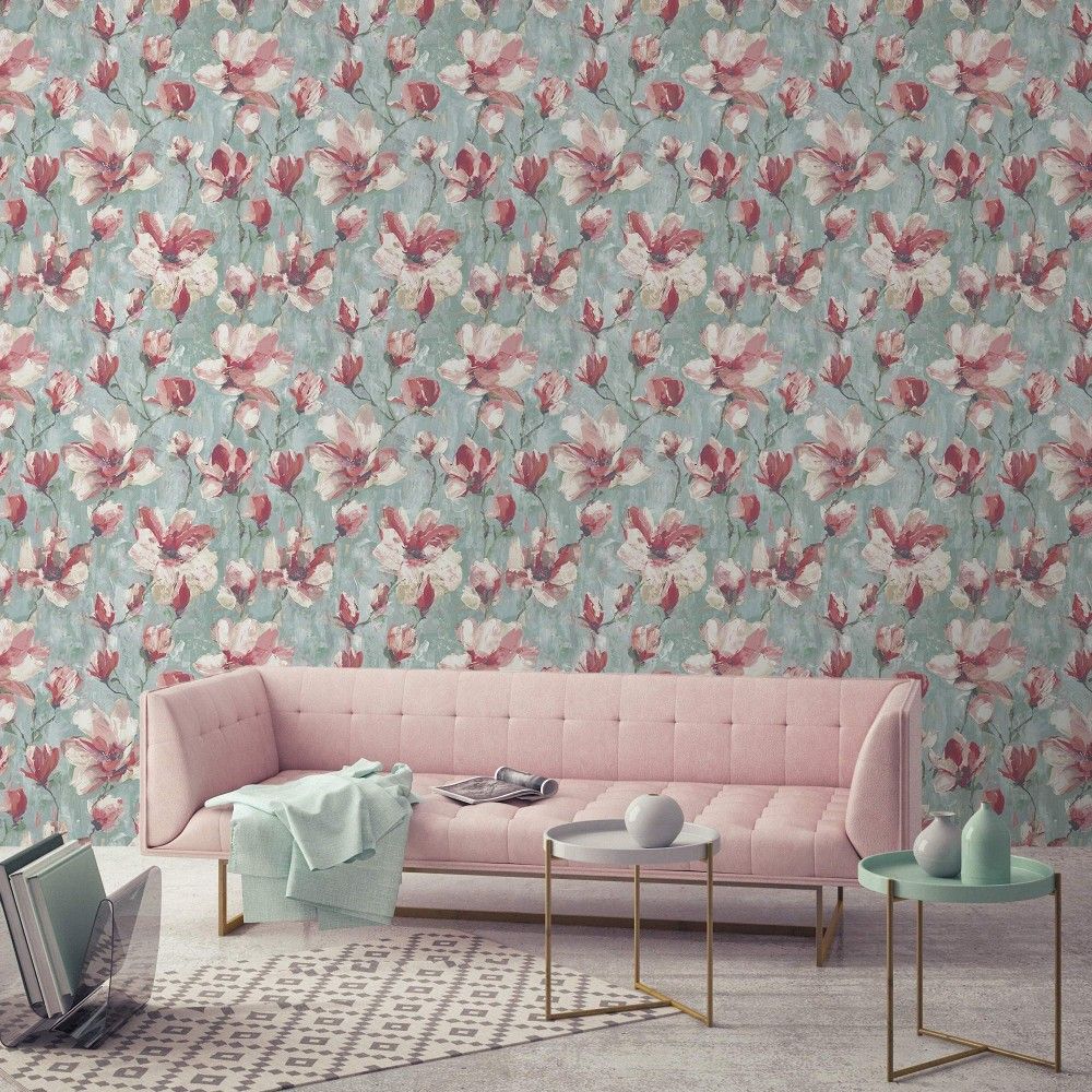Camilla Floral Teal & Pink Magnolia Flowers Wallpaper A72401