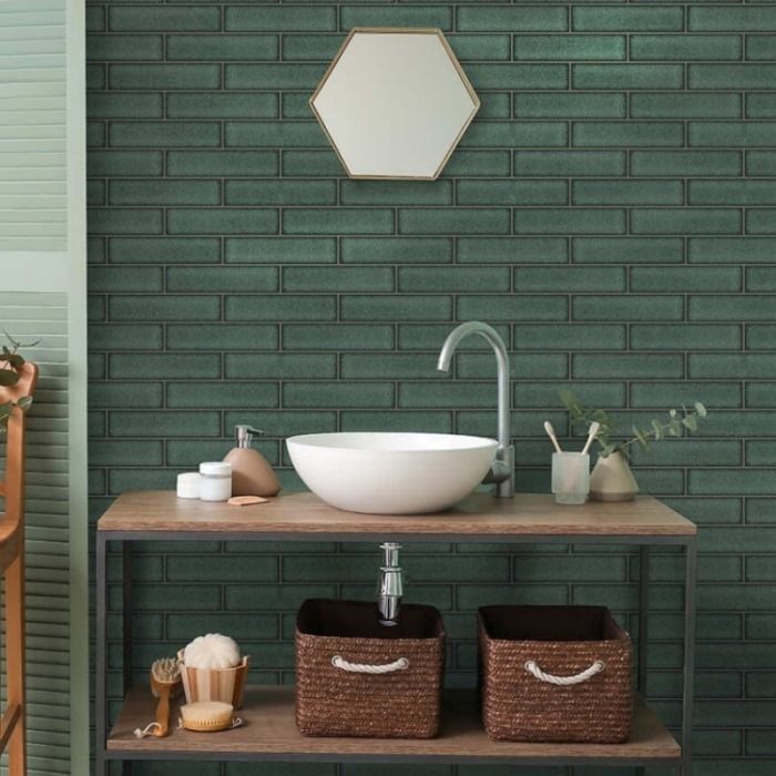 Celadon Gloss Tile Emerald Kitchen & Bathroom Vinyl Wallpaper 89386