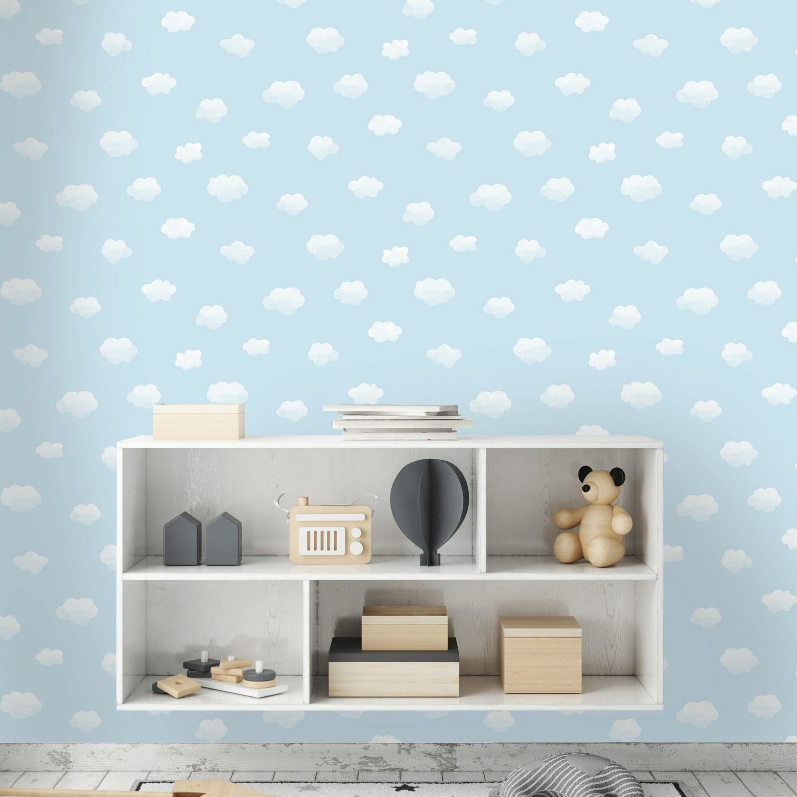 Cloudy Sky Blue Children's Bedroom Playroom Nursery Clouds Wallpaper 90991