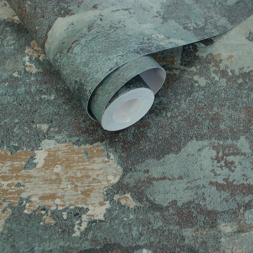 Concrete Texture Teal Blue Industrial Effect Wallpaper 13161