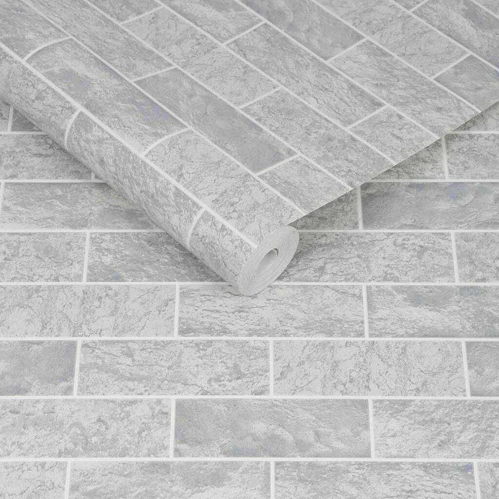 Contour Grey Tile Kitchen & Bathroom Wallpaper 107097