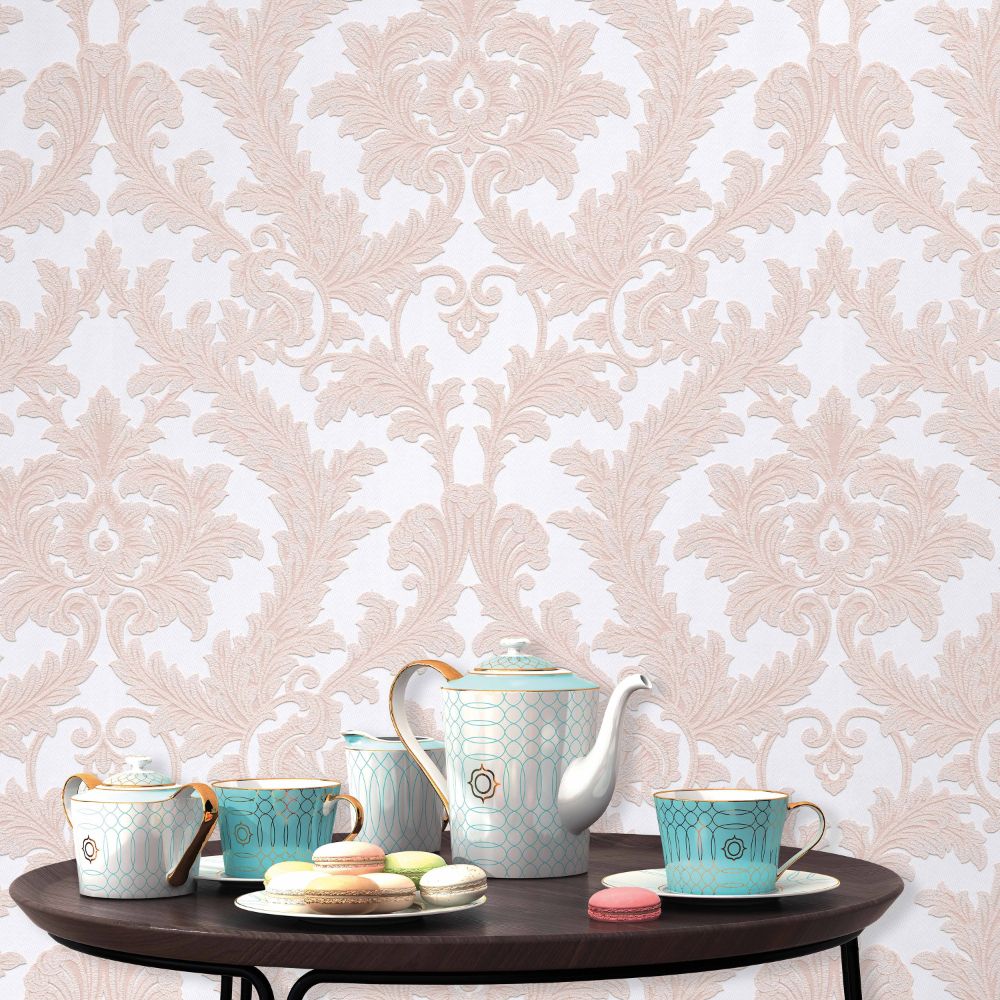 This Dresden inspired wallpaper features a classical damask themed print. Held together on a sheen effect background, with elements of glitter sprinkled above. Please purchase a sample for true colour and texture.