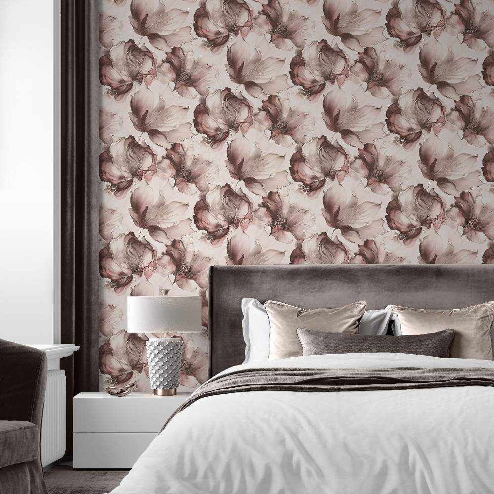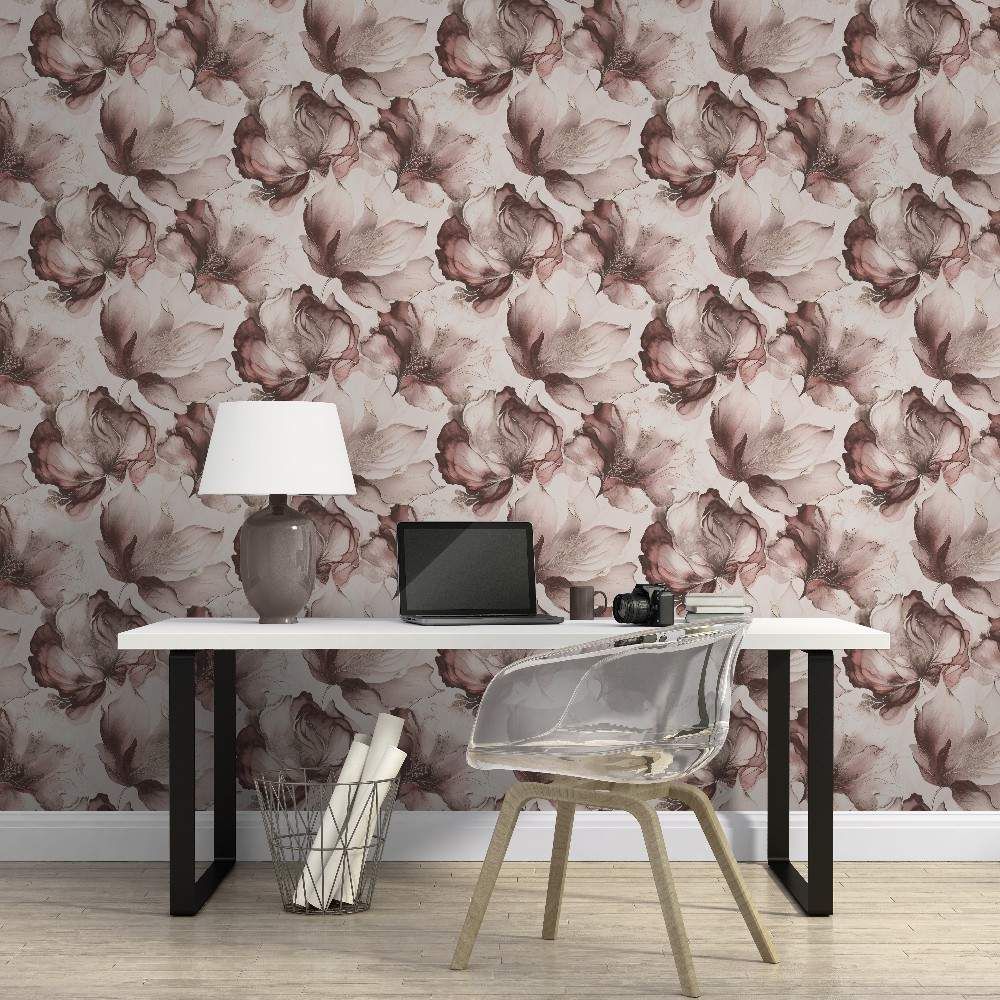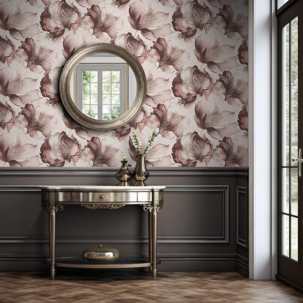 Elysian Floral Pink & Metallic Gold Wallpaper 212504