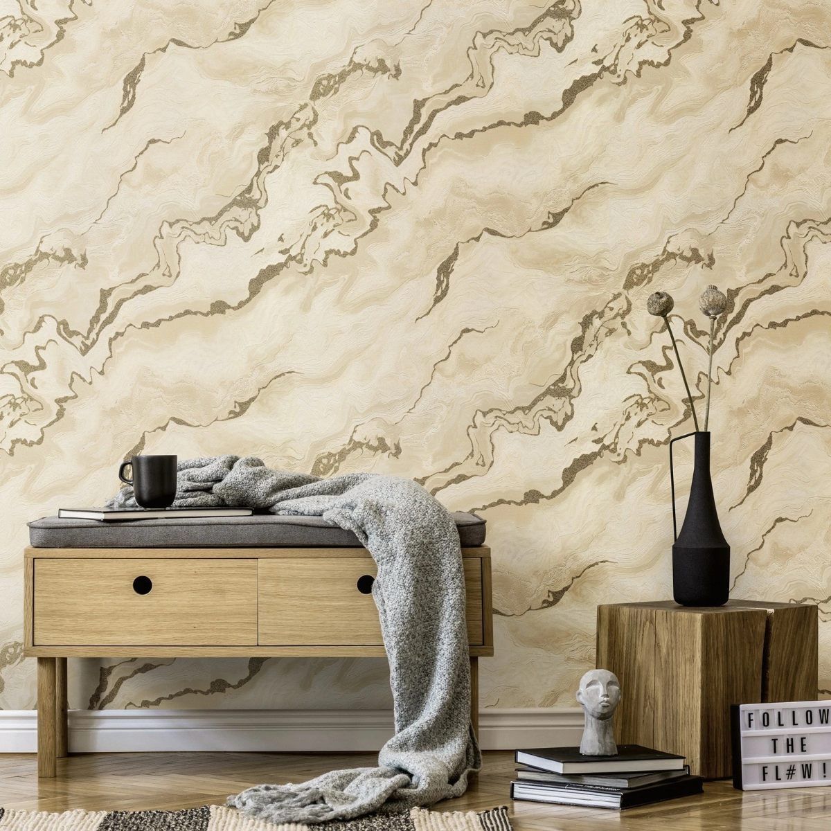 Calculate QuantityThe ELLE Decoration Erismann Marble Wallpaper features a luxurious, high-end marble design enhanced with flowing metallic inks that create a rich, lustrous finish. This premium wallpaper captures the look of polished stone with modern glamour, adding depth, shine, and effortless sophistication to any room. Perfect for contemporary living spaces, bedrooms, hallways, and feature walls, this luxury marble wallpaper brings a stylish designer touch to your interior. Easy to hang and beautifully detailed, it’s an ideal choice for anyone seeking a sleek, refined, and truly exclusive finish.