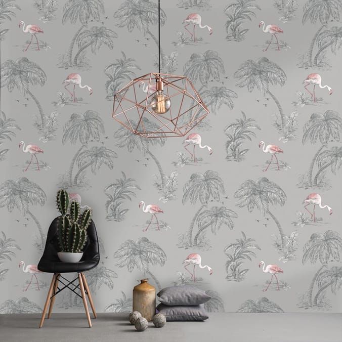 Flamingo Lake Grey Conversational Wallpaper by Holden Decor 12381