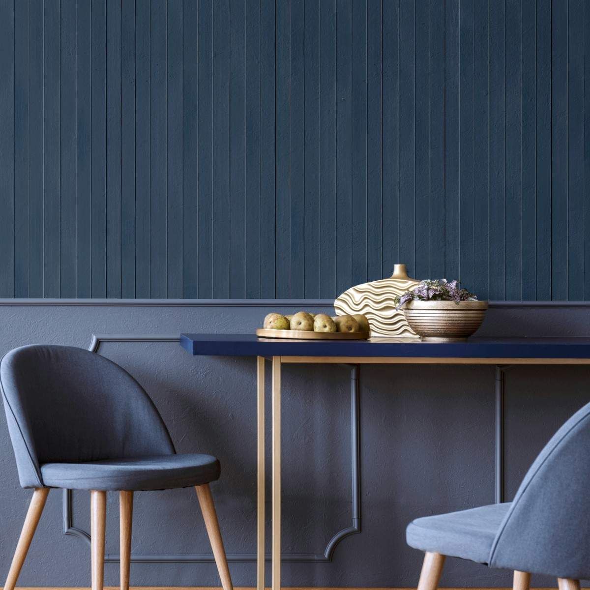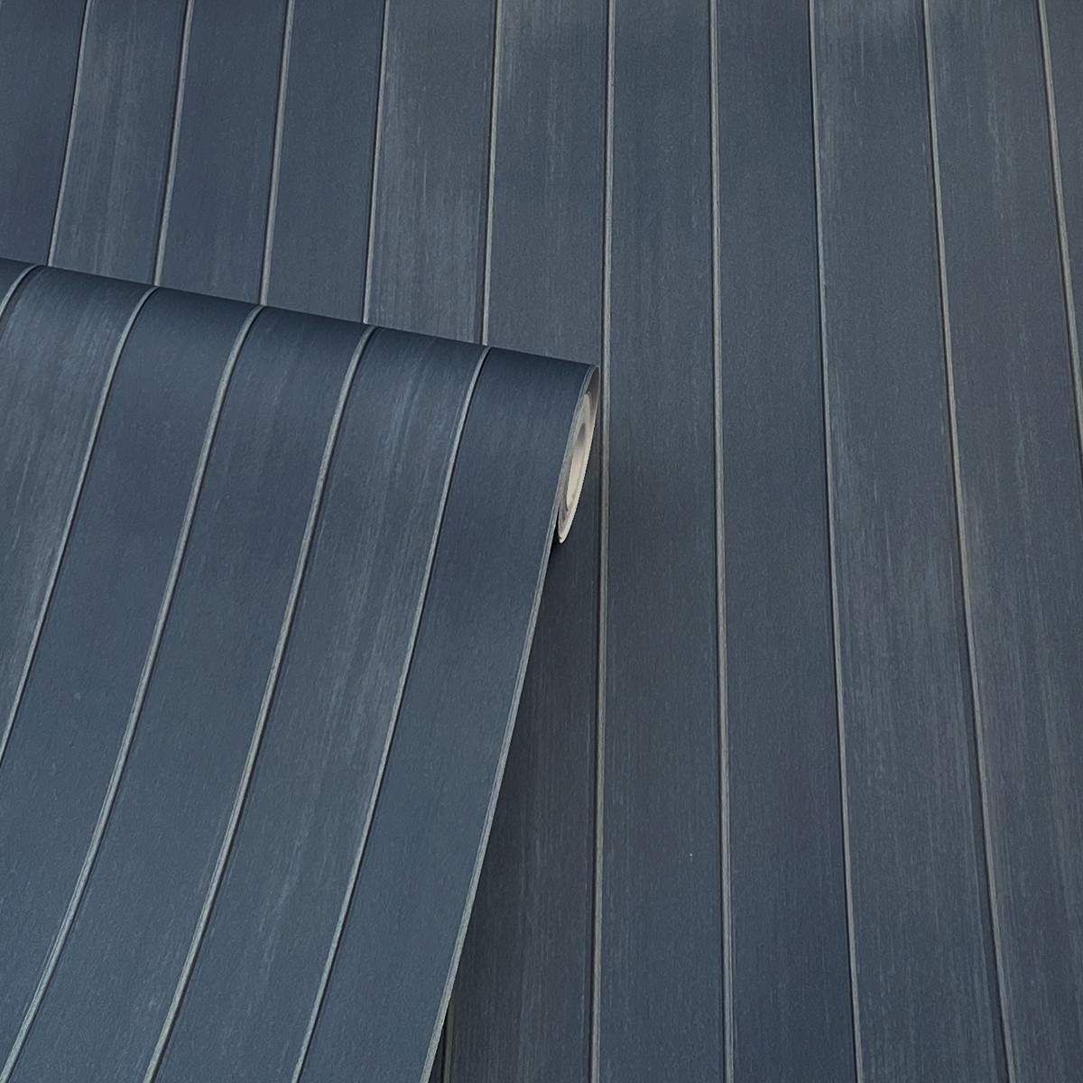 Add a subtle design element to your room with this flat wooden plank wallpaper. The contemporary stripe design, in a modern blue "easy living" colorway, is versatile and the realistic wood grain effect allows you to skip the hassle of installing your own wood panels!