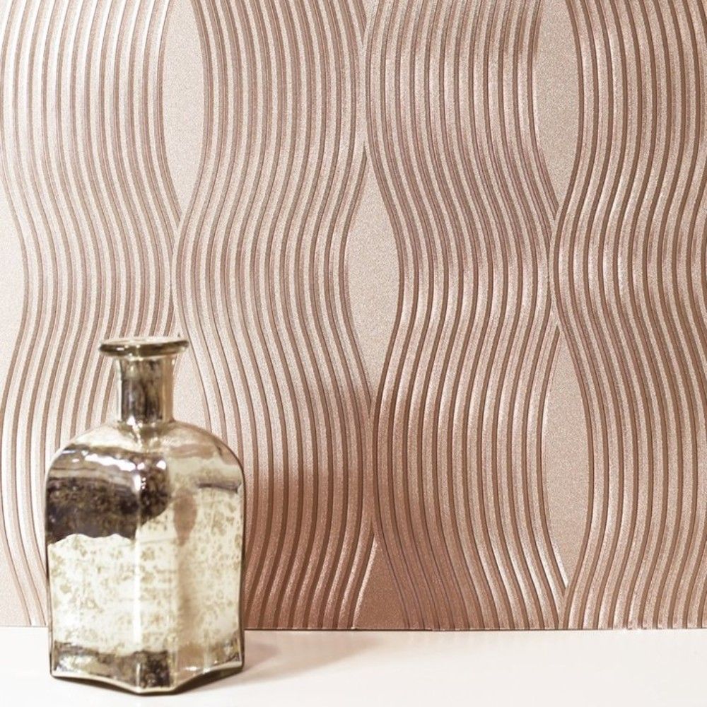 Calculate QuantityThis stunning wallpaper will bring your room to life with its wave design that catches the light from every angle. In a luxurious rose gold foil finish, and contrasting textures, it's a perfect choice for updating your home, whether your style is retro chic or cool and contemporary. A vinyl paper that's not only tough and hardwearing, it will also cover slight imperfections on your walls, so it's a great option to give a room a great finish, effortlessly. Ideal for halls, living rooms, dining rooms, bathrooms or bedrooms, in contemporary or traditional homes.