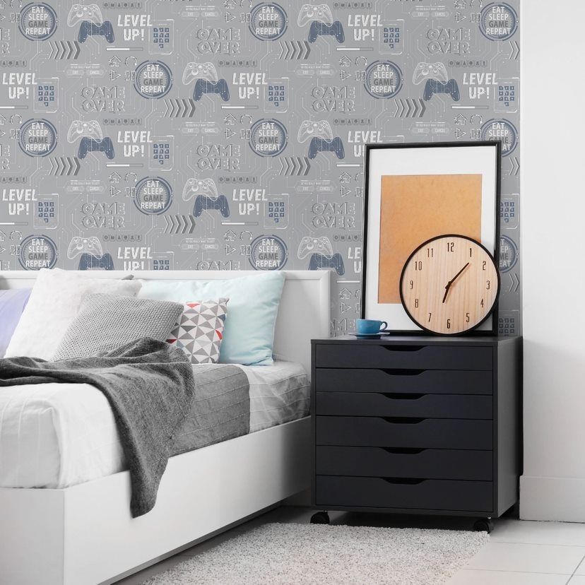 Your gaming aficionado at home will adore this contemporary design! This kids' wallpaper is perfect for gaming rooms and bedrooms, boasting a trendy combination of grey and navy that looks absolutely stunning.