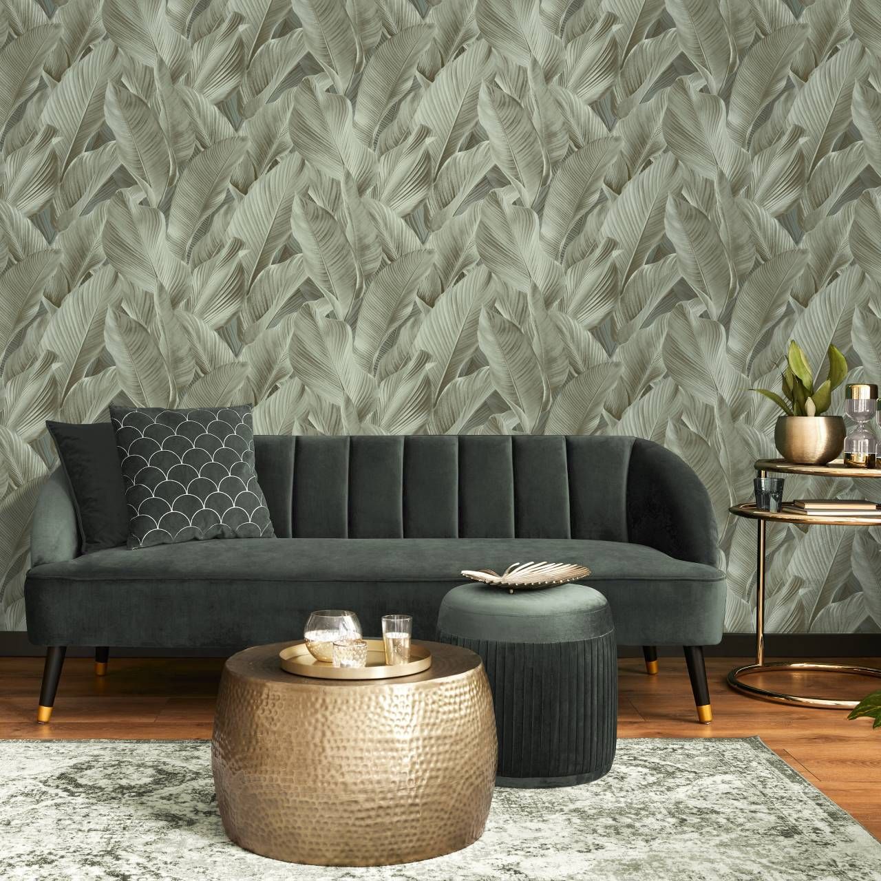 Gianni Leaf Khaki Green Vinyl Wallpaper M95688