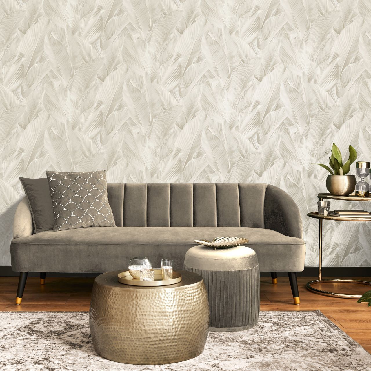 Gianni Leaf Stone Mink Vinyl Wallpaper M95686