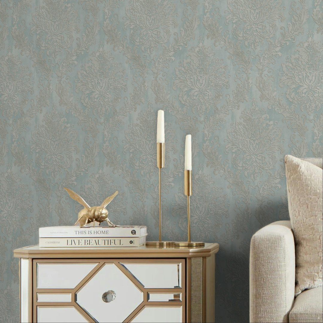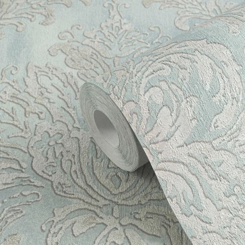 Grand Palace Blue & Grey Damask Vinyl Wallpaper 79049-3