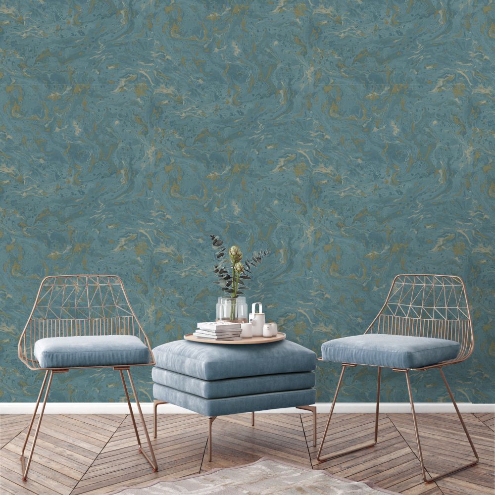 Grandeco Marble Teal & Gold Wallpaper 174311