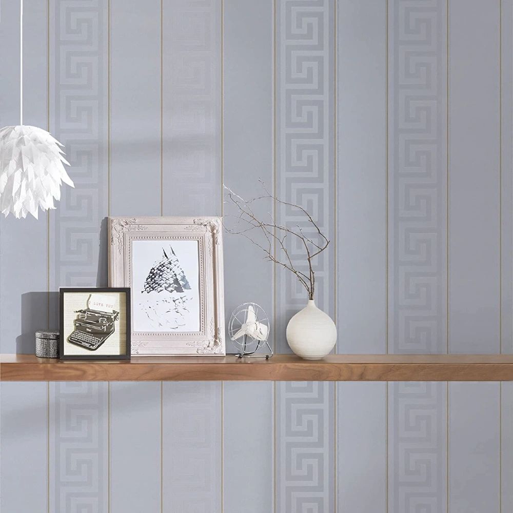 Greca Stripe Silver & Gold Luxury Vinyl Wallpaper 935245