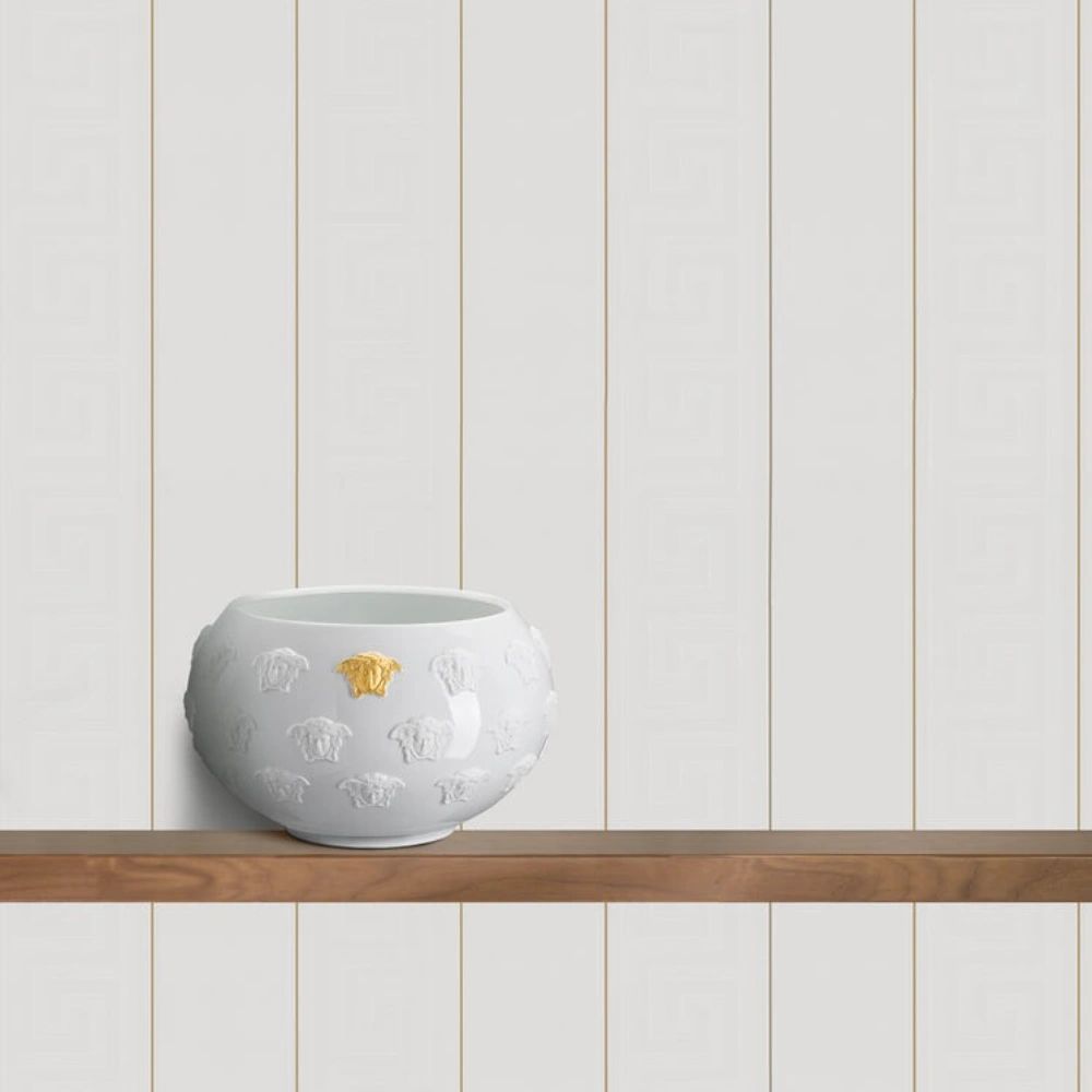 Calculate QuantityTimelessly elegant, this white and gold wallpaper adds a touch of Versace luxury to interiors. The minimal geometric design represents the iconic Greca pattern for an ultra-glamorous wall embellishment.*This is a special order item and cannot be returned. We highly recommend you order a sample before purchasing this wallpaper.