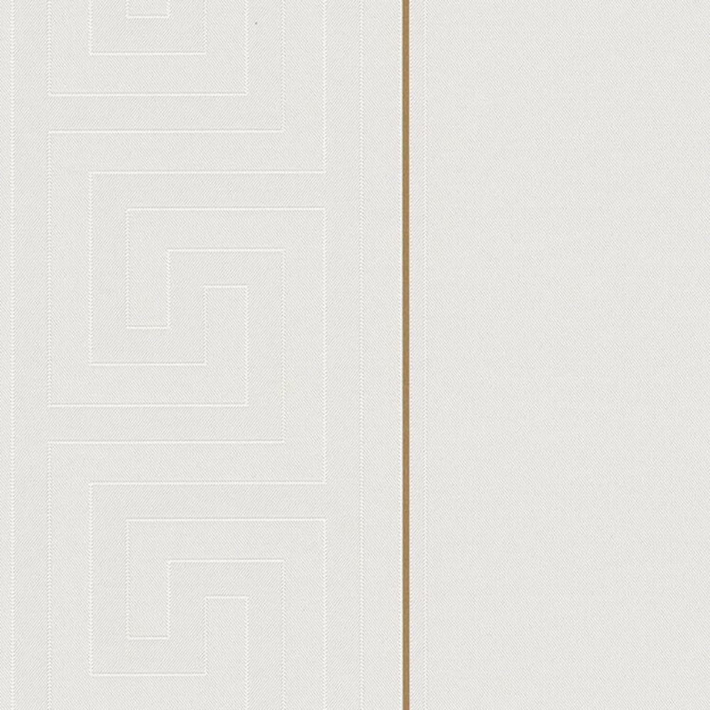 Greca Stripe White & Gold Luxury Vinyl Wallpaper 935241