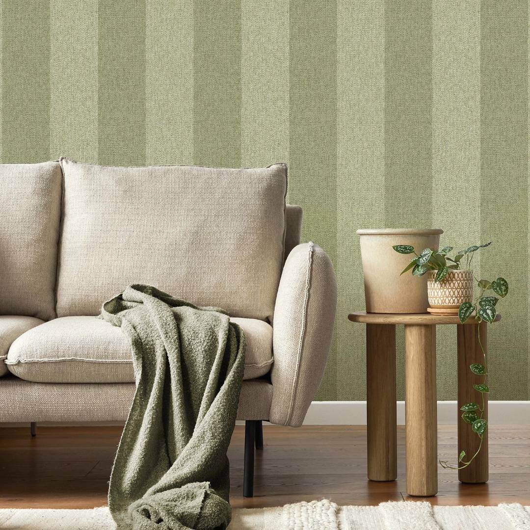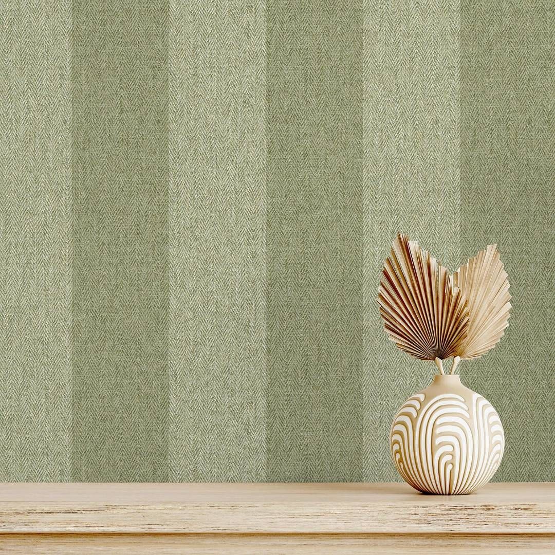 Harris Stripe Sage Green Tweed Herringbone Wallpaper by Crown M1866