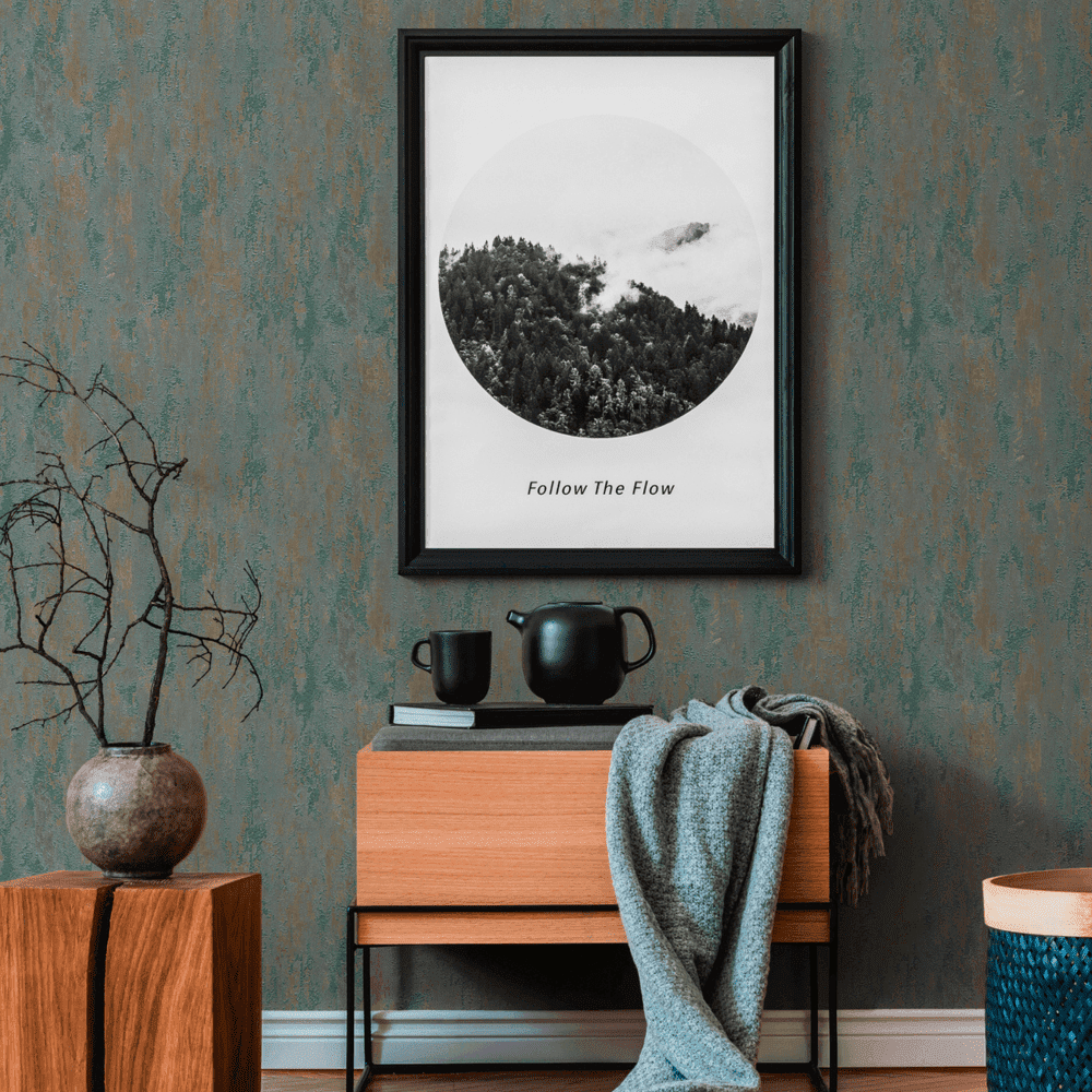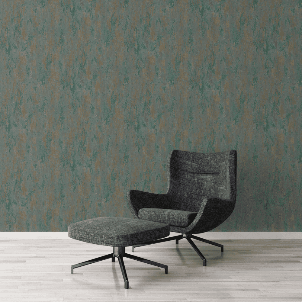 Havana Distressed Industrial Effect Green & Copper Vinyl Wallpaper 32651-2