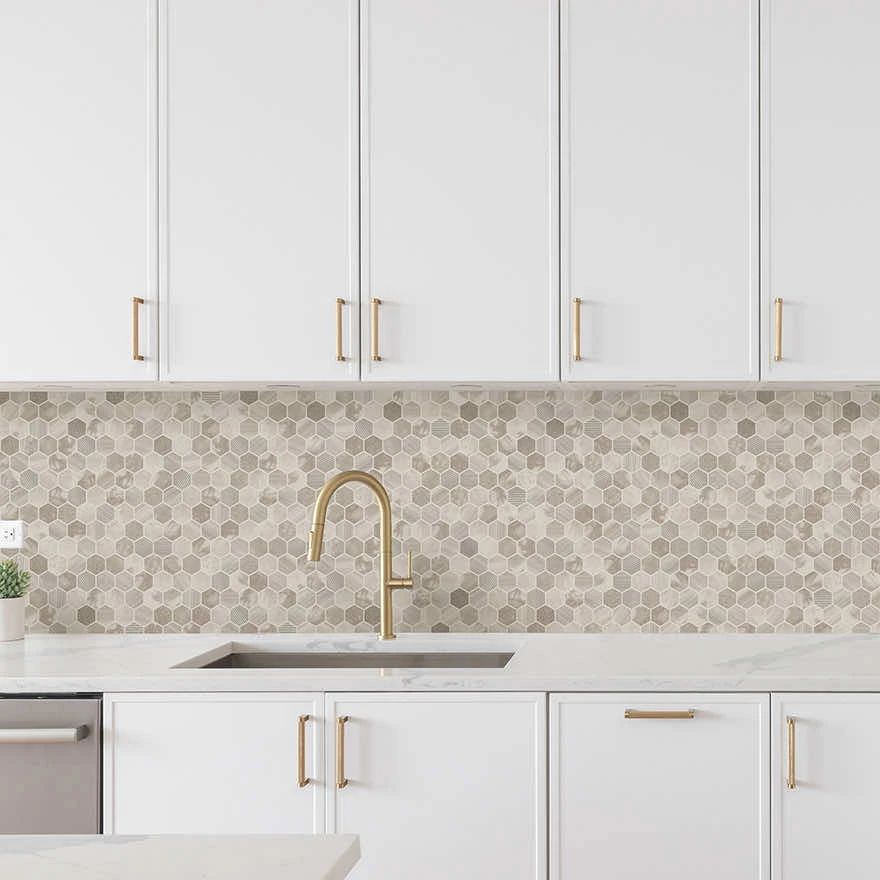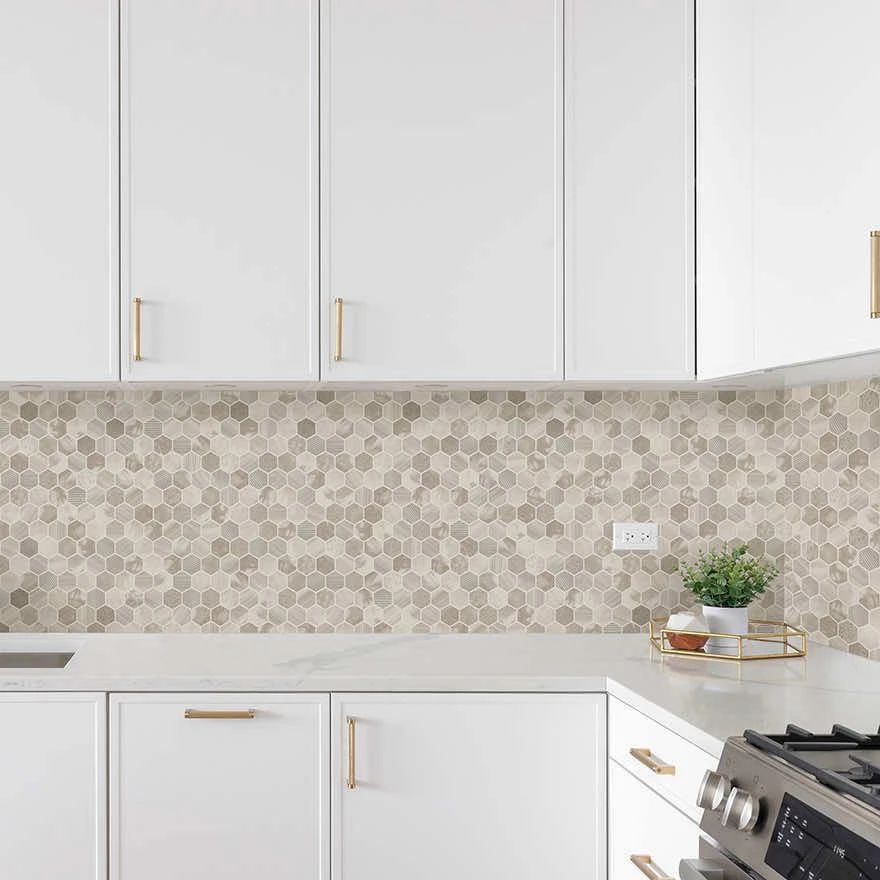 Calculate QuantityHexara Tile, inspired by classic honeycomb mosaic patterns, combines delicate marble detailing with soft linear textures and subtle metallic accents to create a design full of depth and elegance. Available in three stunning colourways — Bronze, Grey, and Cream — this stylish tile-effect wallpaper adds a modern, sophisticated touch to kitchens, bathrooms, and feature walls throughout the home.