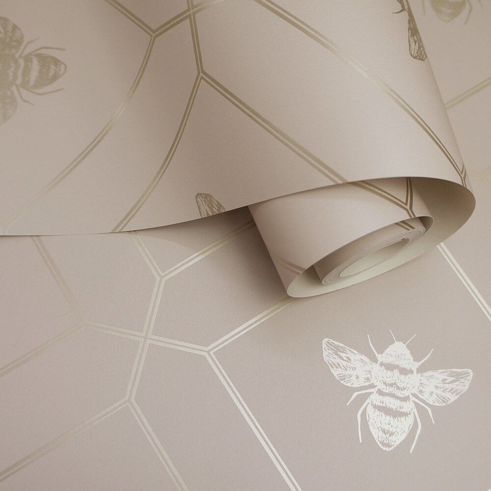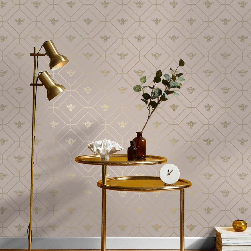 Honeycomb Bee Pink Geometric Metallic Gold Wallpaper 13083