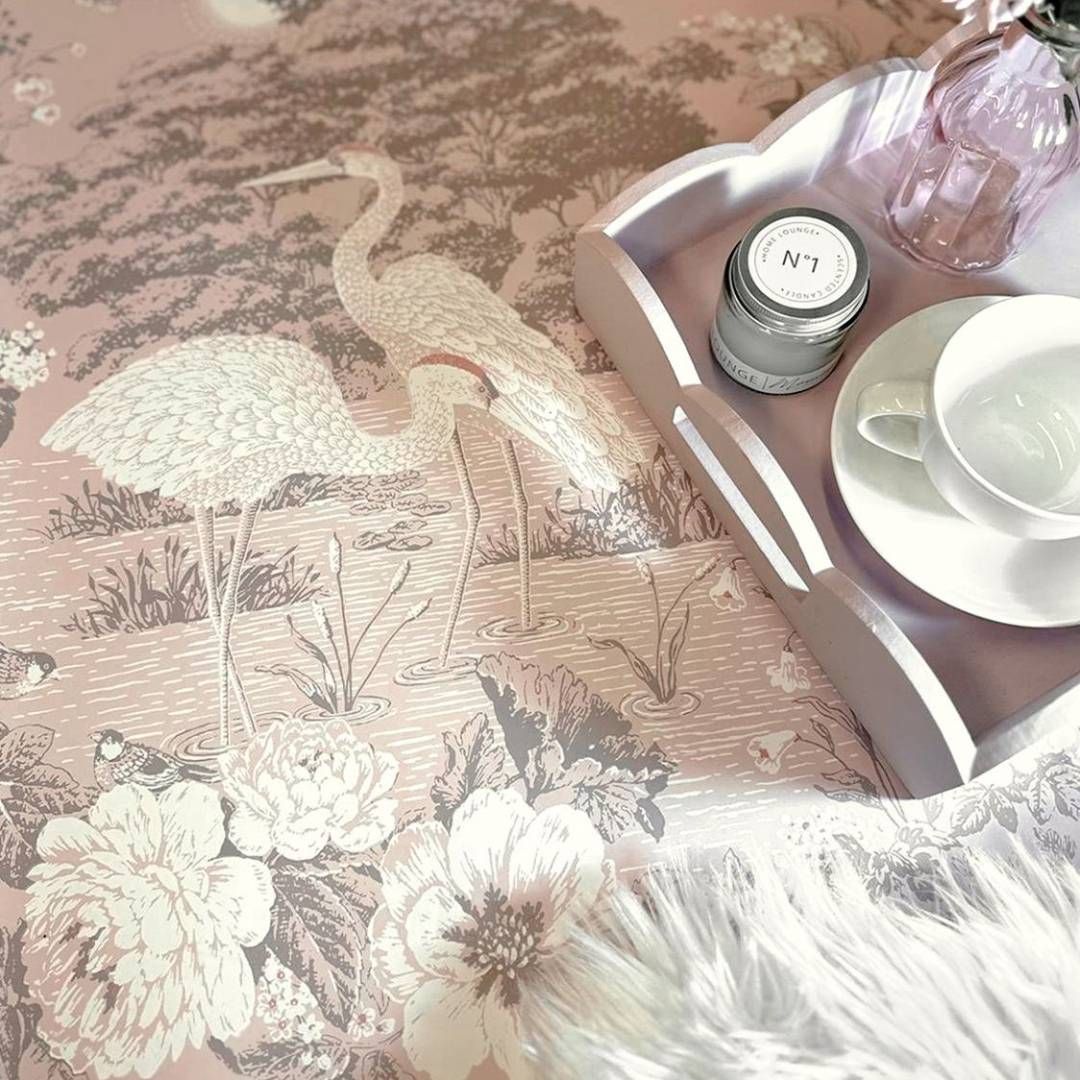 Izumi Japanese Elegant Cranes Pink Wallpaper 743