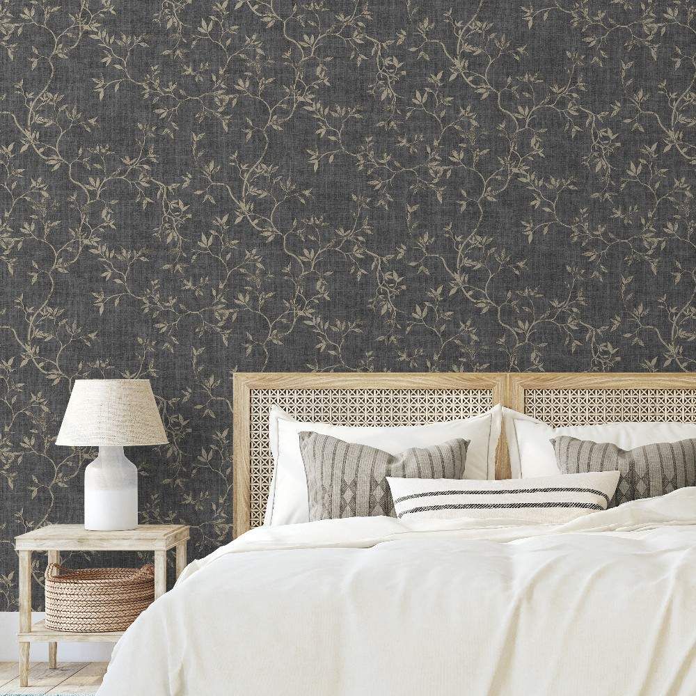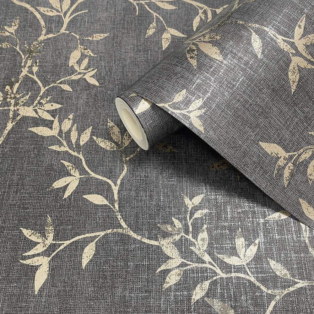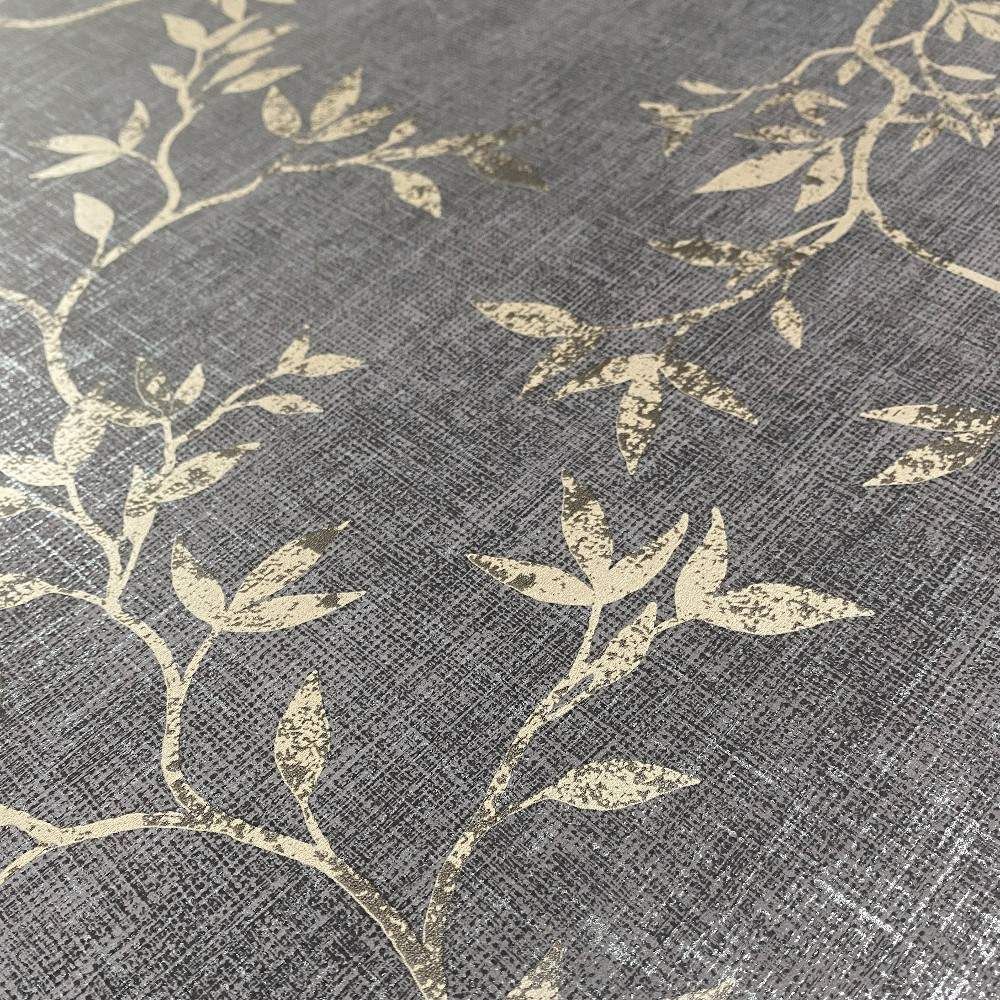 Japandi Leaf Charcoal & Metallic Gold Floral Darcy James Wallpaper 173572