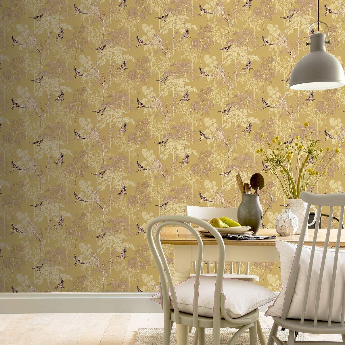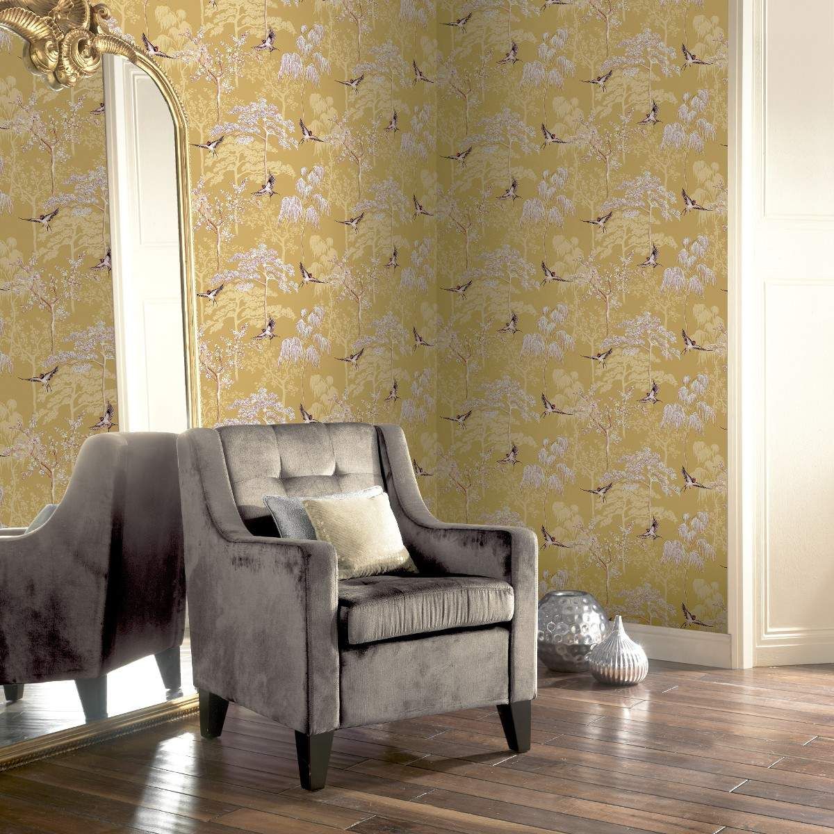 Calculate QuantityAdd a touch of elegance to your home with this striking wallpaper design featuring beautifully hand-drawn oriental trees and birds on a soft ochre background. The intricate pattern is highlighted with pearlescent accents, adding depth and texture to the overall look. Whether used as a feature wall in a living room, bedroom, or hallway, this wallpaper is sure to make a statement.