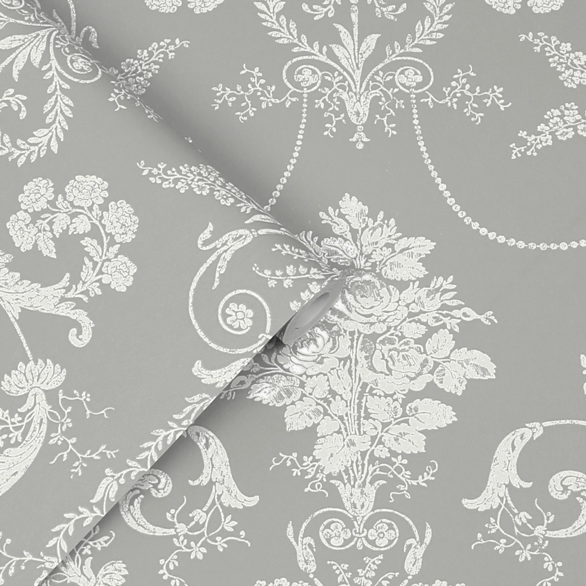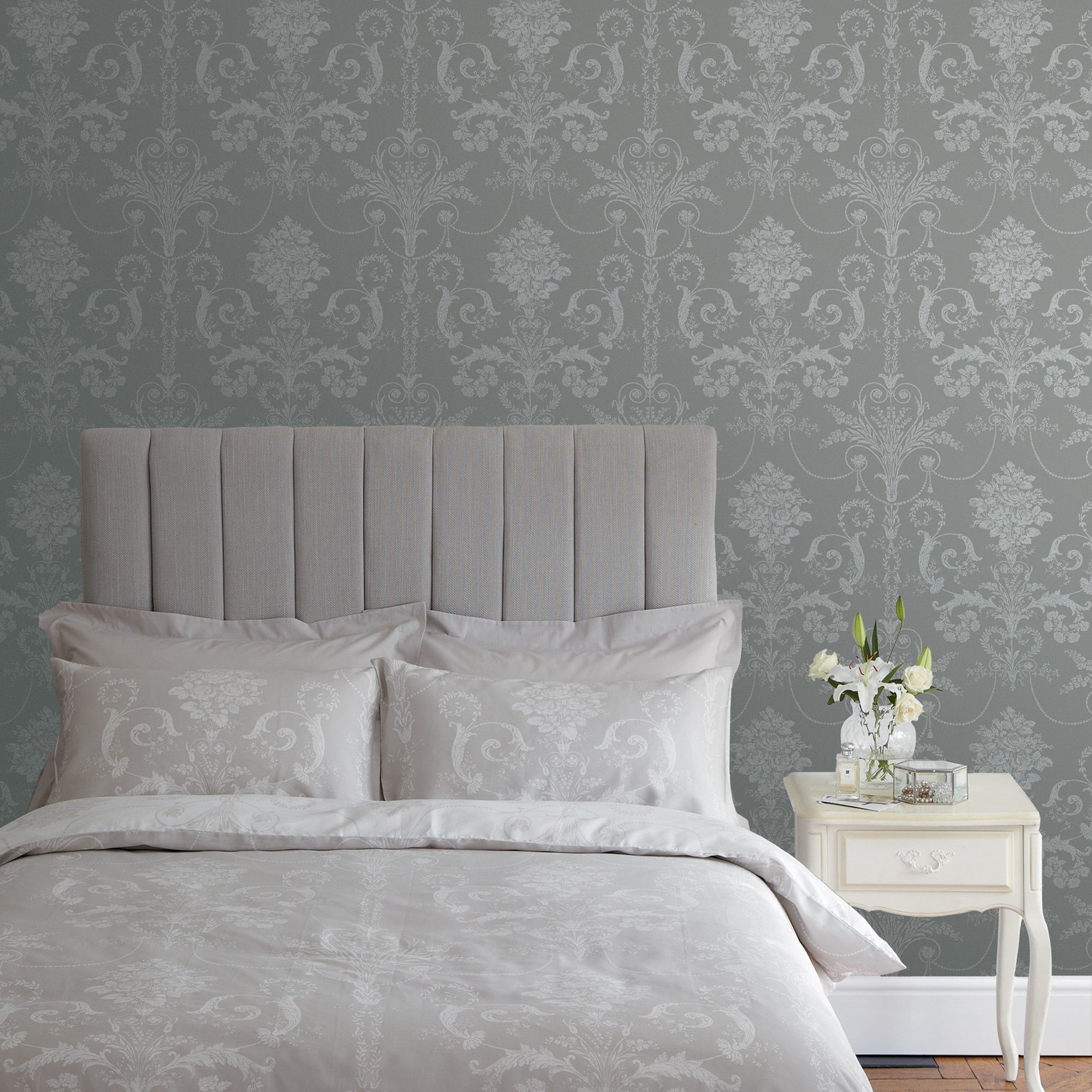 Josette French Toil Damask Steel Laura Ashley Wallpaper 113383